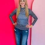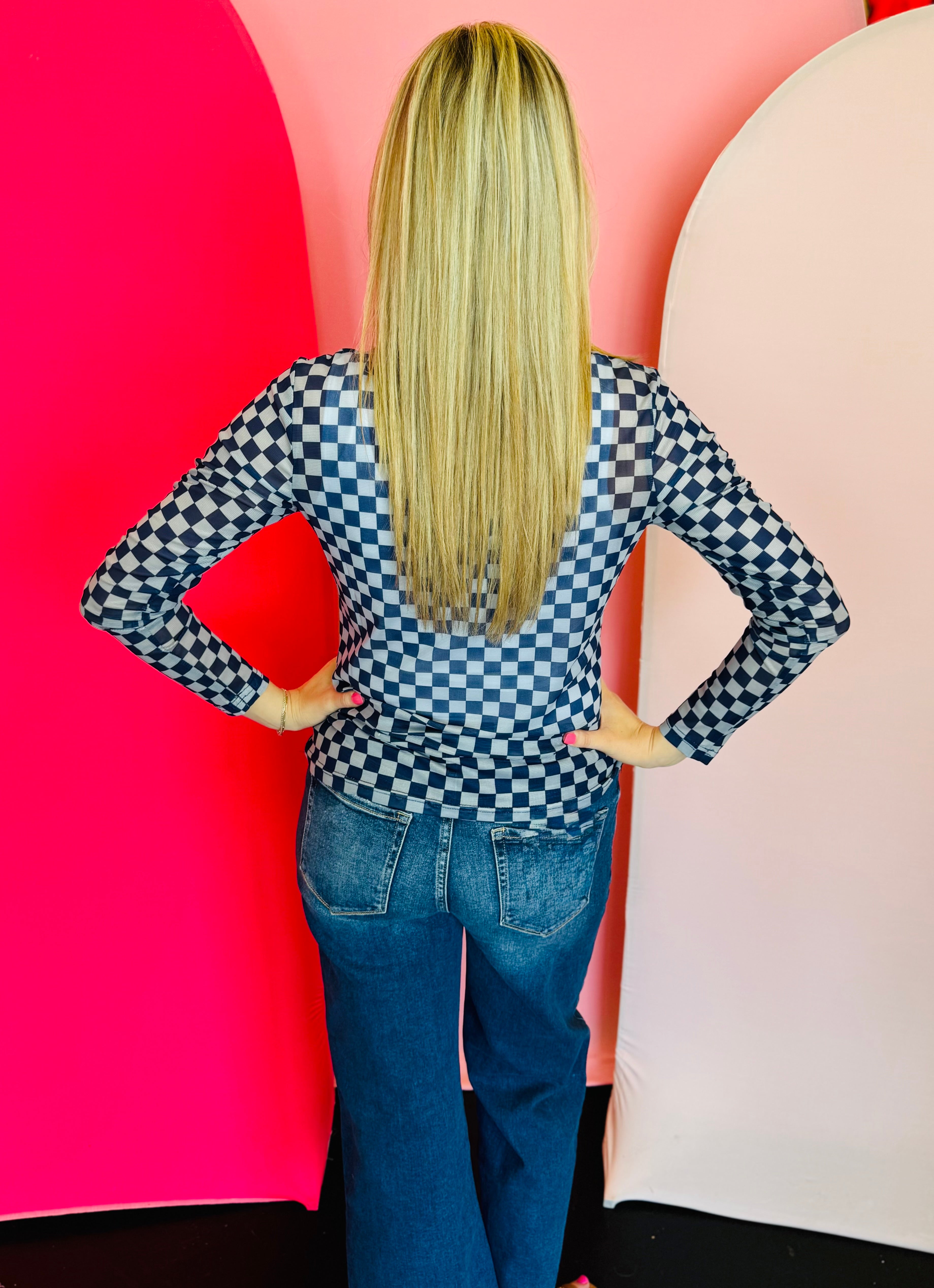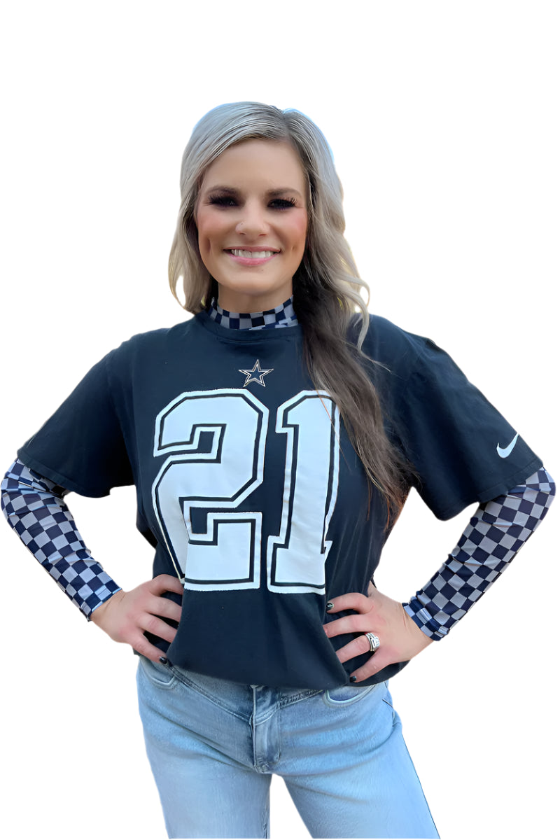 Be the cutest cowgirl at the game with our Cowboy Cuties Mesh Top. Featuring a stylish gray and blue checkered print, this mesh top will let you show off your love for the Dallas Cowboys in a fun way!