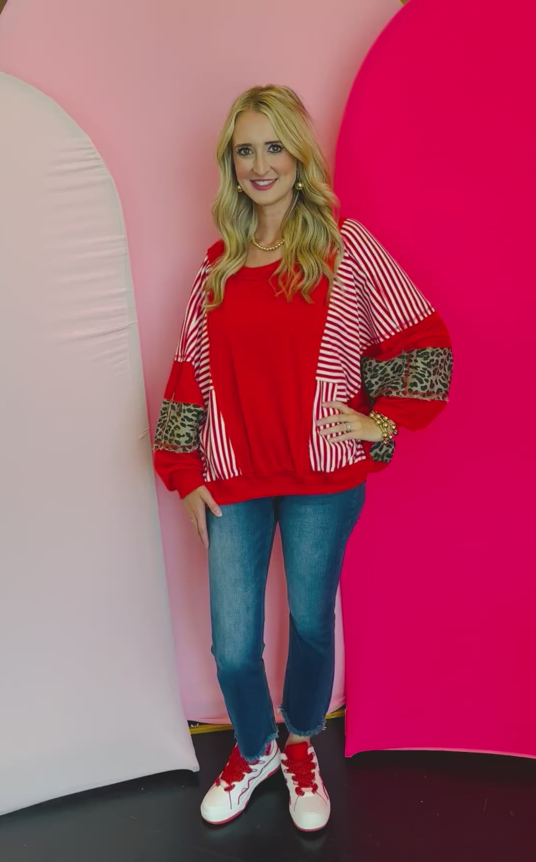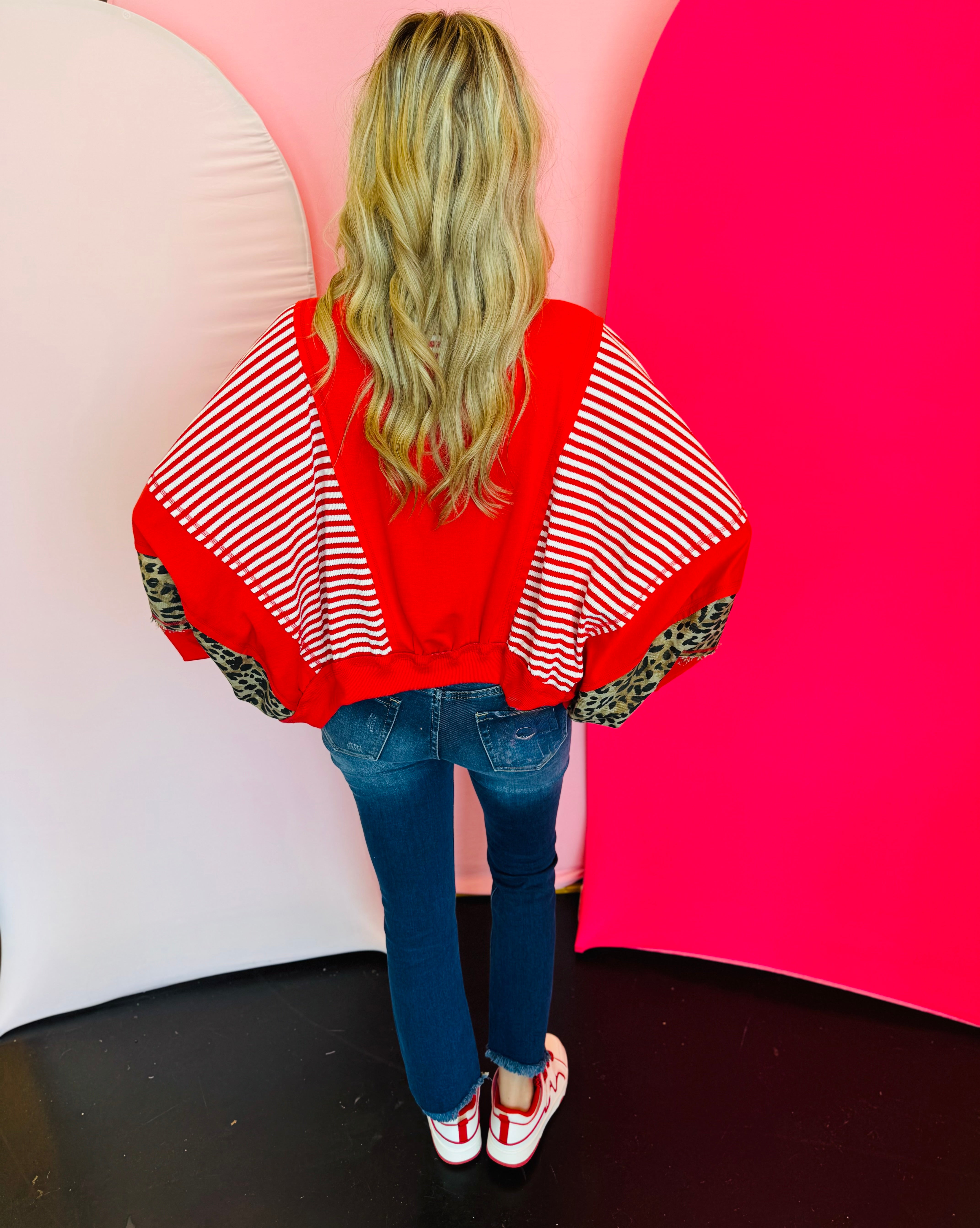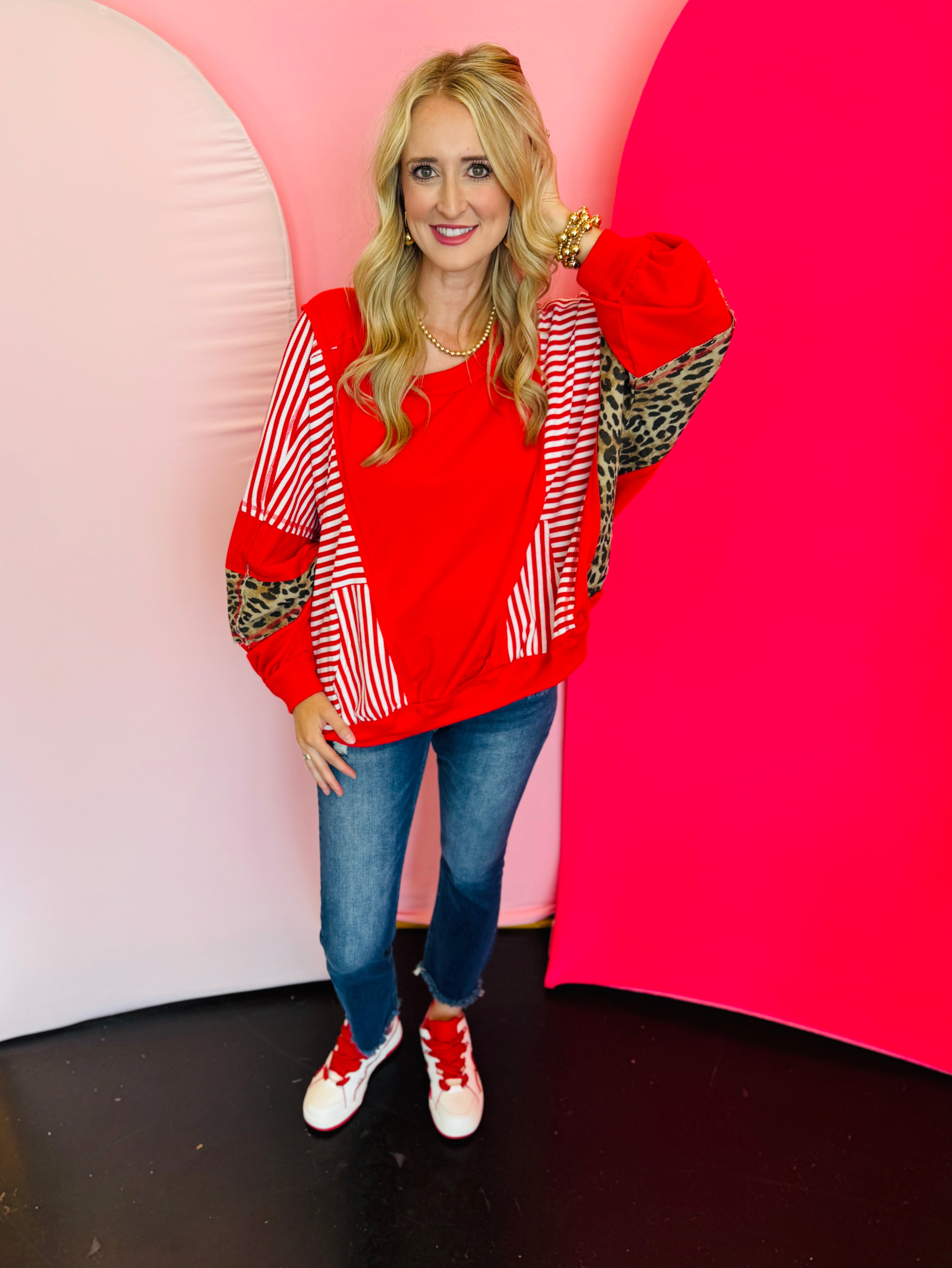 Turn heads in this must-have piece—the Red Stripe & Leopard Top brings fun and flair to any outfit.