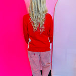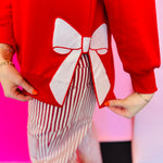 Embrace festive charm with our Red Merry Bow Sweatshirt! This vibrant red sweatshirt makes a cheerful statement, featuring bold white chenille lettering that spells out "Merry" across the front. The soft, textured lettering creates an eye-catching focal point, while playful bow accents on the sides add a delightful and unique touch. This cozy top ensures both warmth and a flattering fit for all your seasonal celebrations. It’s perfect for casual holiday gatherings or infusing your everyday style with joyous spirit.