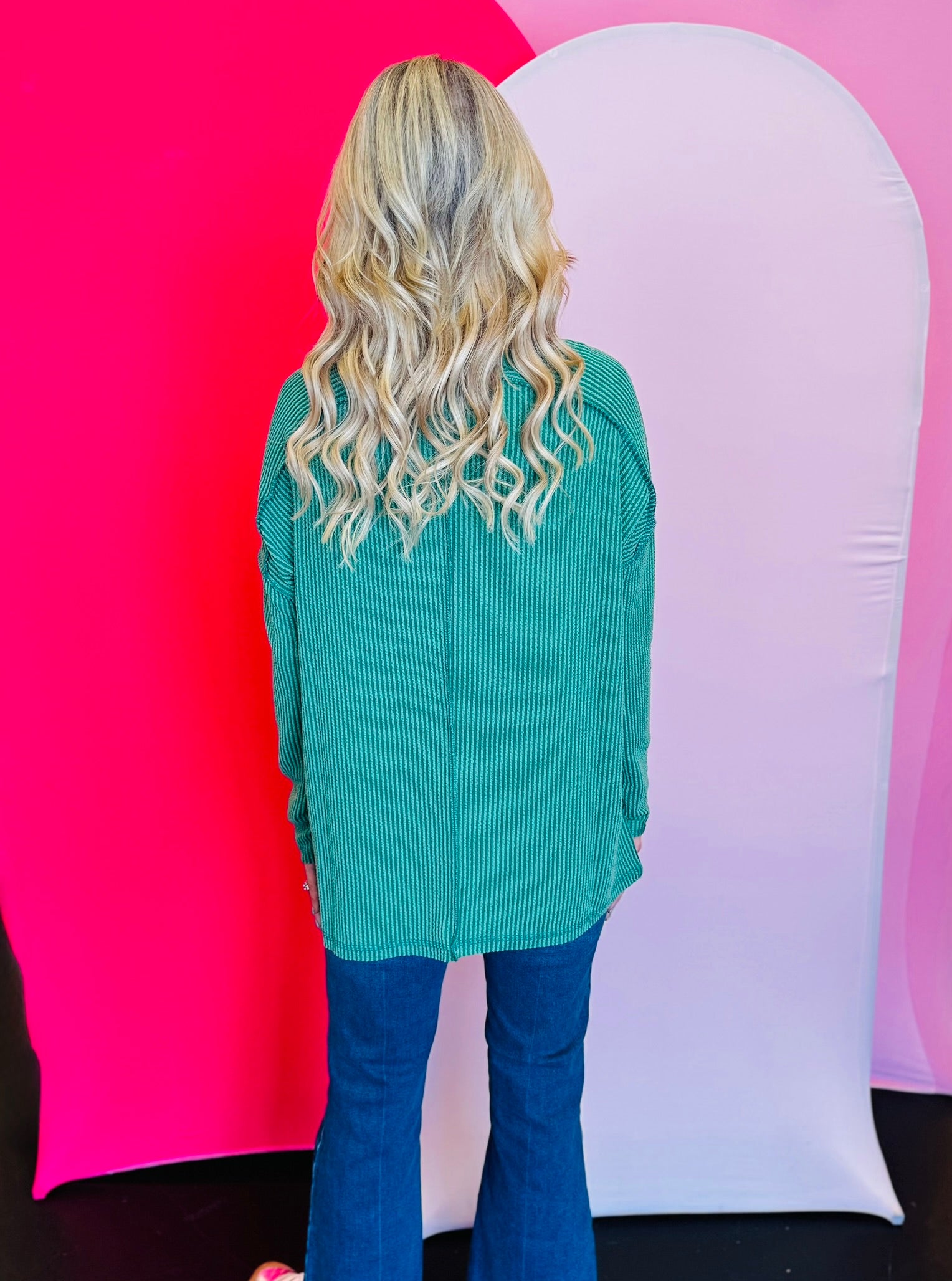 Say hello to effortless flair with our Dark Green Ribbed Boat Neck Top! This is a must-have staple. This eye-catching long sleeve top features a stylish raised ribbed texture, raw edge detailing, and a flattering boat neckline for a modern silhouette. Its roomy fit and soft, stretchy fabric make it perfect for all-day comfort, whether you're dressing it up or keeping it casual.