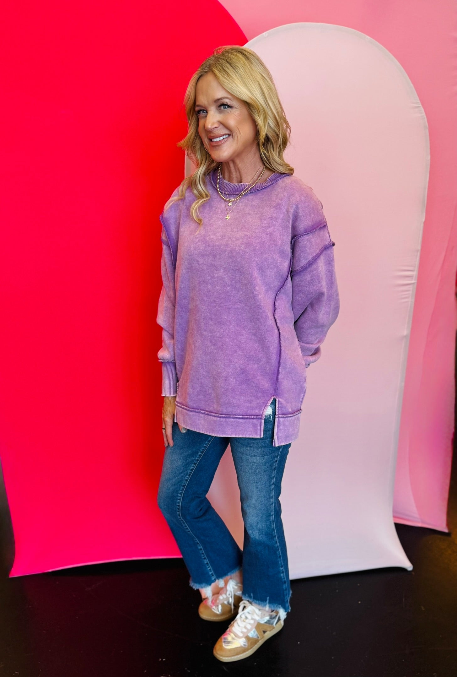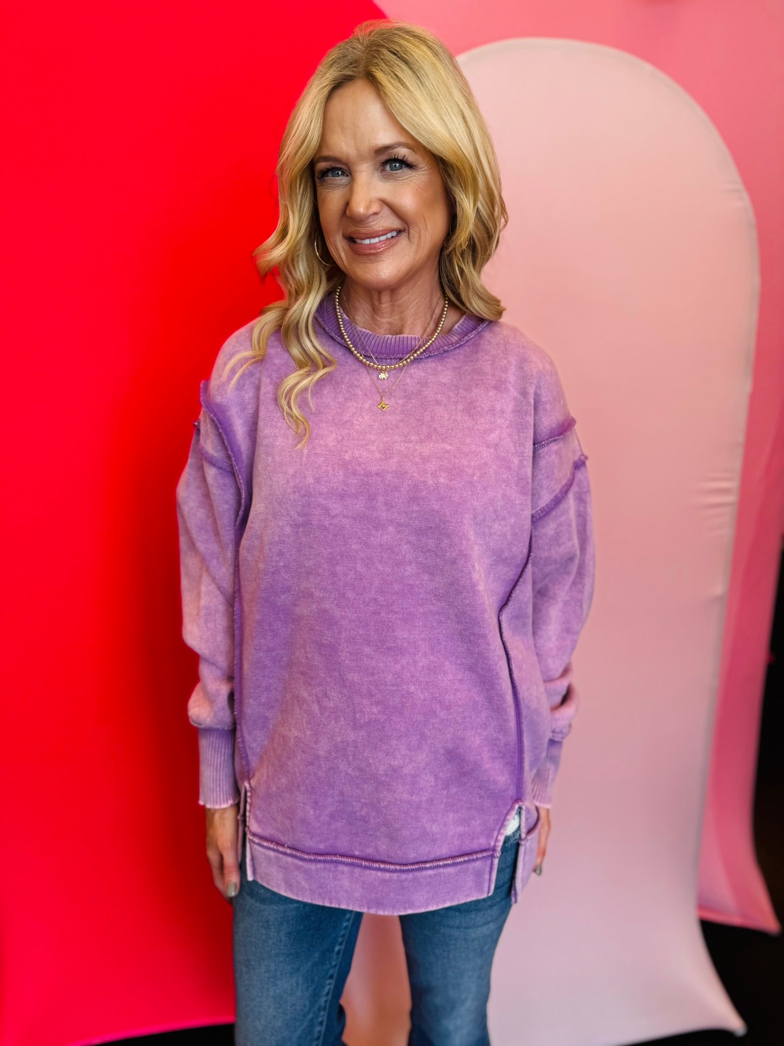 Ocean Blue Acid Wash Fleece Sweatshirt