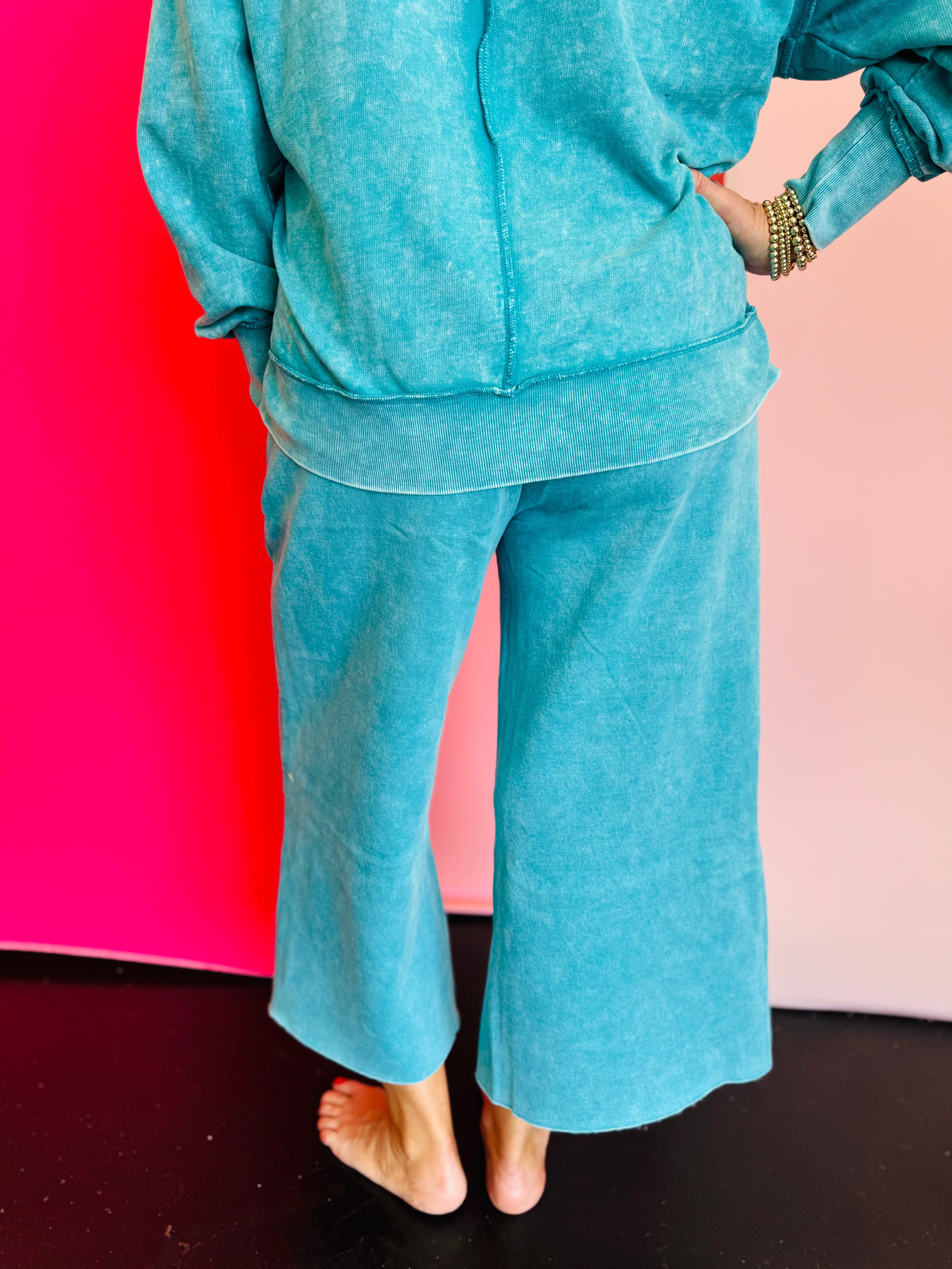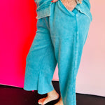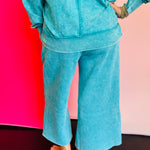 Relax in on-trend comfort with our Acid Wash Fleece Palazzo Sweatpants, a stylish addition to your lounge or streetwear collection. Crafted from a soft cotton-poly blend, these sweatpants offer cozy warmth with a lightweight, breathable feel. The distinctive acid wash finish provides a vintage, lived-in look, while the wide-leg palazzo cut ensures effortless movement and all-day comfort. A trendy raw hem adds a modern, laid-back finish. Featuring a drawstring band waist for a custom, adjustable fit and roomy side pockets to keep your essentials secure, these pants are both practical and chic. Perfect for off-duty days, travel, or casual outings, they combine style and everyday versatility.