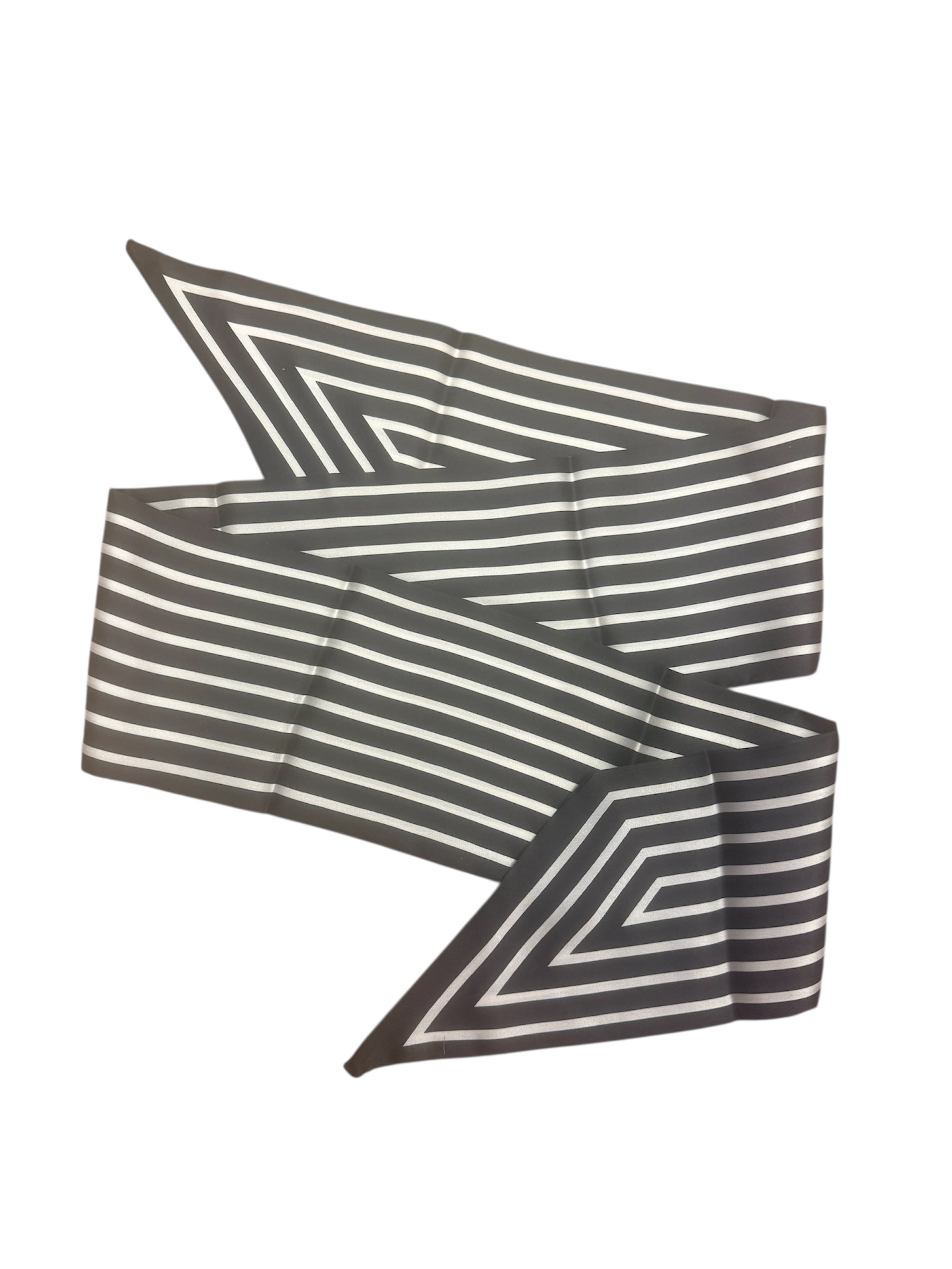 Black and white striped scarf tie used as a purse twilly or fashionable handbag accessory.