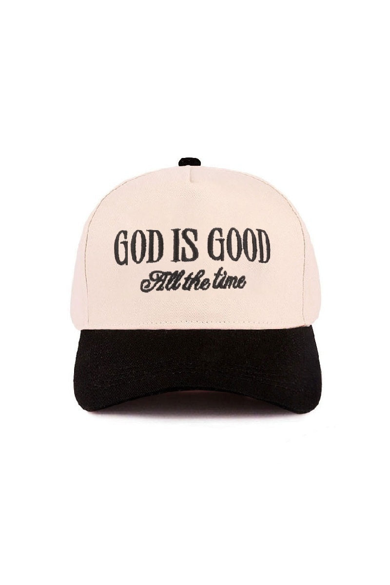 Show your faith boldly with our God Is Good Black Trucker Hat, a modern two-tone accessory designed for style, comfort, and inspiration. This lightweight canvas cotton cap features a clean white crown paired with a contrasting black bill for a classic, eye-catching look. The front displays the powerful embroidered message “God Is Good All The Time” in striking black lettering, making it a meaningful piece you can wear with any outfit. Perfect for year-round use, this breathable cap is ideal for workouts, errands, travel, church events, game days, or casual weekends. The adjustable strap with metal buckle ensures a comfortable, customizable fit, while the structured trucker silhouette adds a trendy and versatile touch. With a 22–25" circumference and 2.35" brim, it delivers style and faith with every wear.