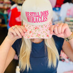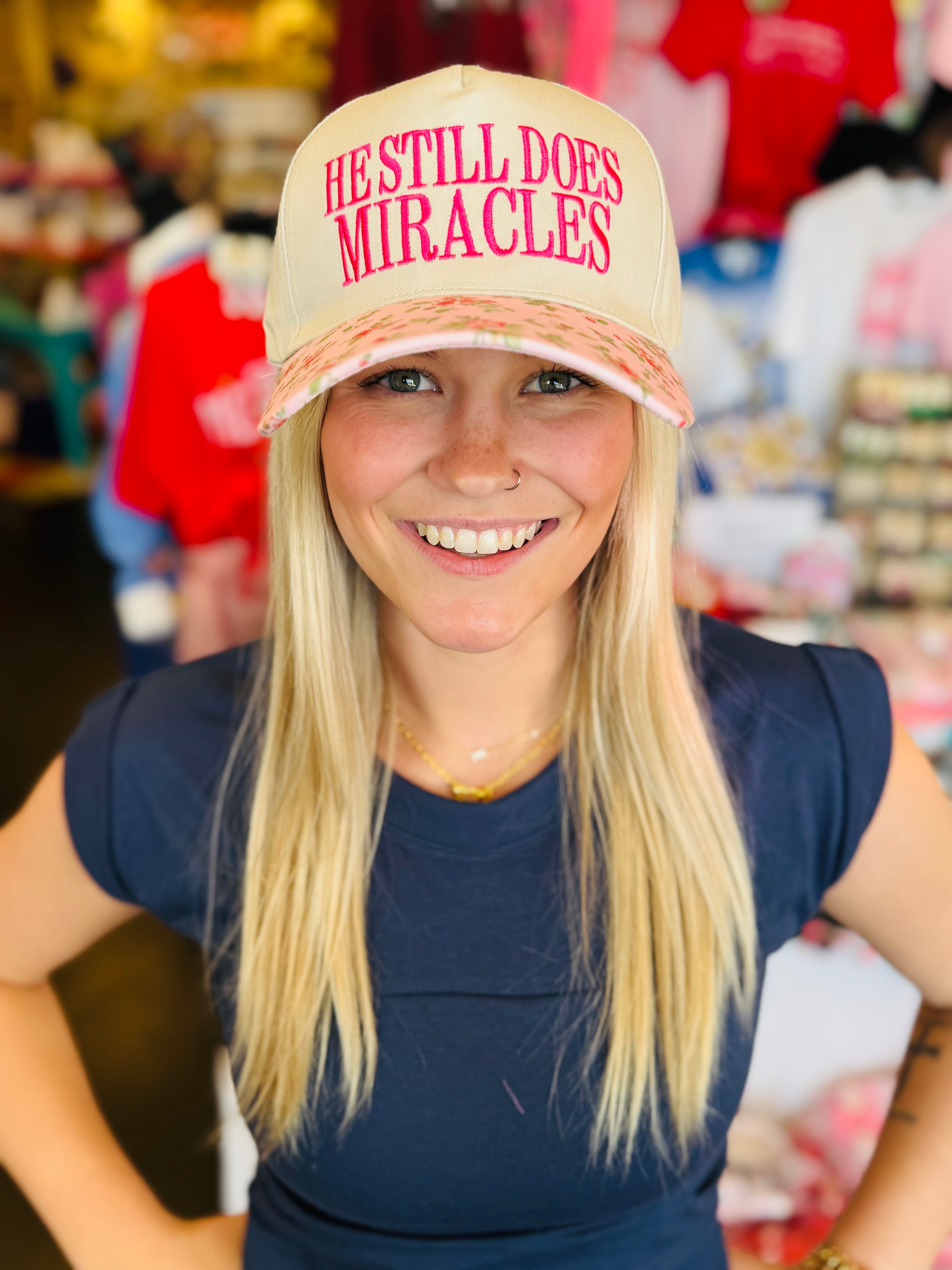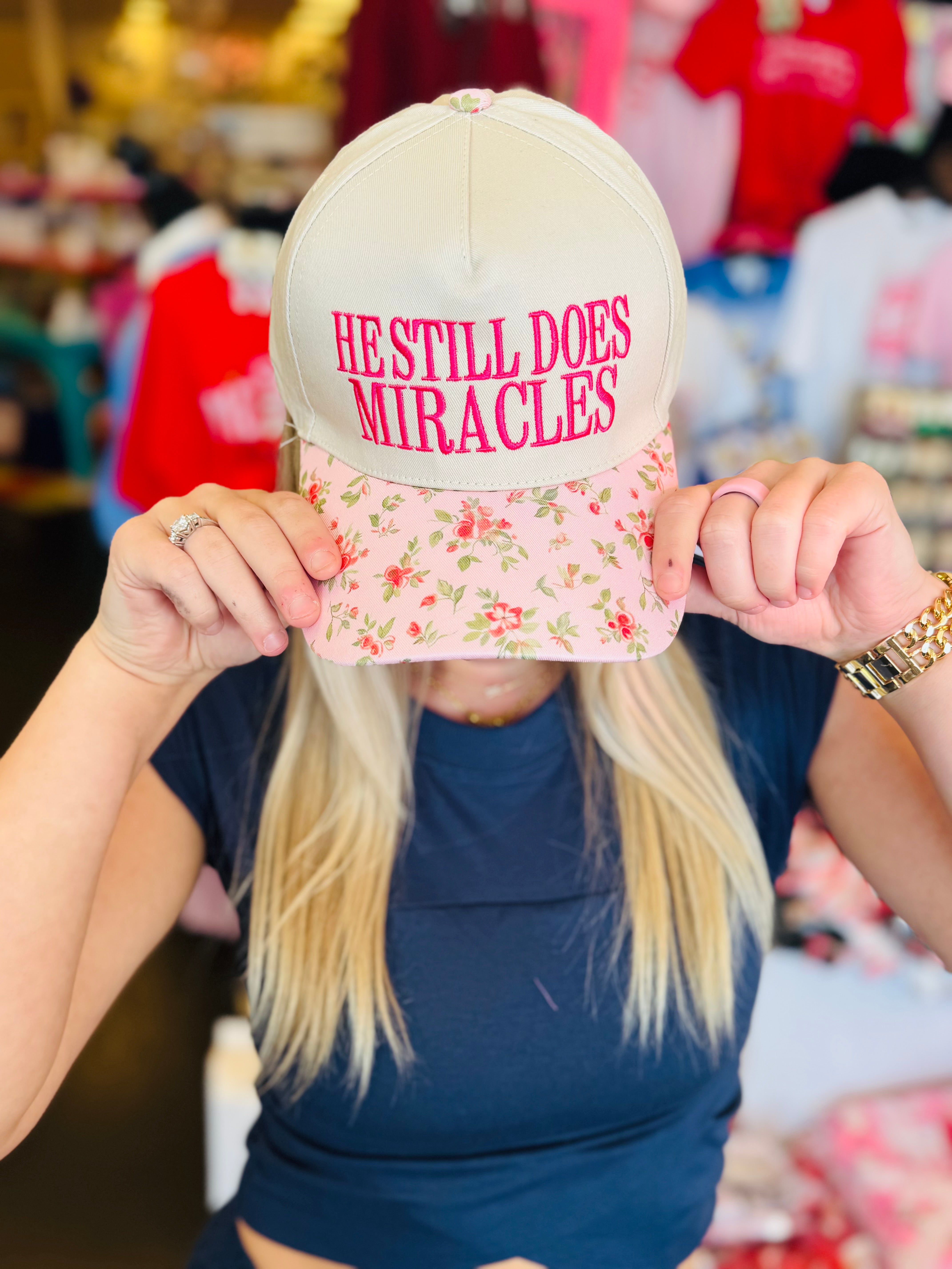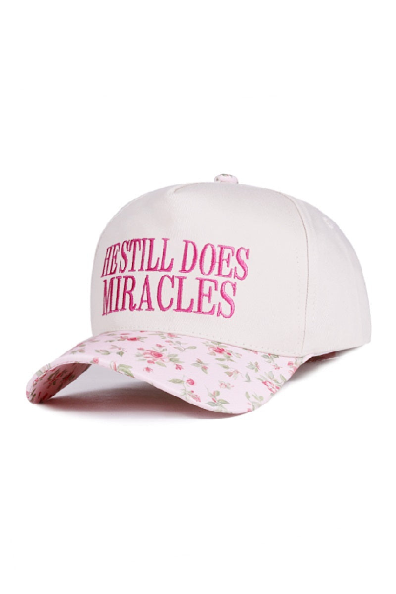 Share your faith with fresh, feminine style in our He Still Does Miracles Floral Cap, a beautiful and meaningful accessory designed for everyday wear. This two-tone canvas cotton hat features a crisp white crown with pink embroidered lettering that reads “He Still Does Miracles,” paired with a soft floral-print bill that adds a charming, uplifting touch. Lightweight, breathable, and perfect for all seasons, this cap is ideal for errands, workouts, outdoor events, weekend outfits, or any moment you want to carry encouragement with you. The adjustable strap with metal buckle allows for a secure, custom fit, while the structured silhouette ensures effortless versatility. With a circumference of 22–25" and a 2.35" brim, this faith-inspired floral cap blends comfort, beauty, and inspiration in one must-have accessory.