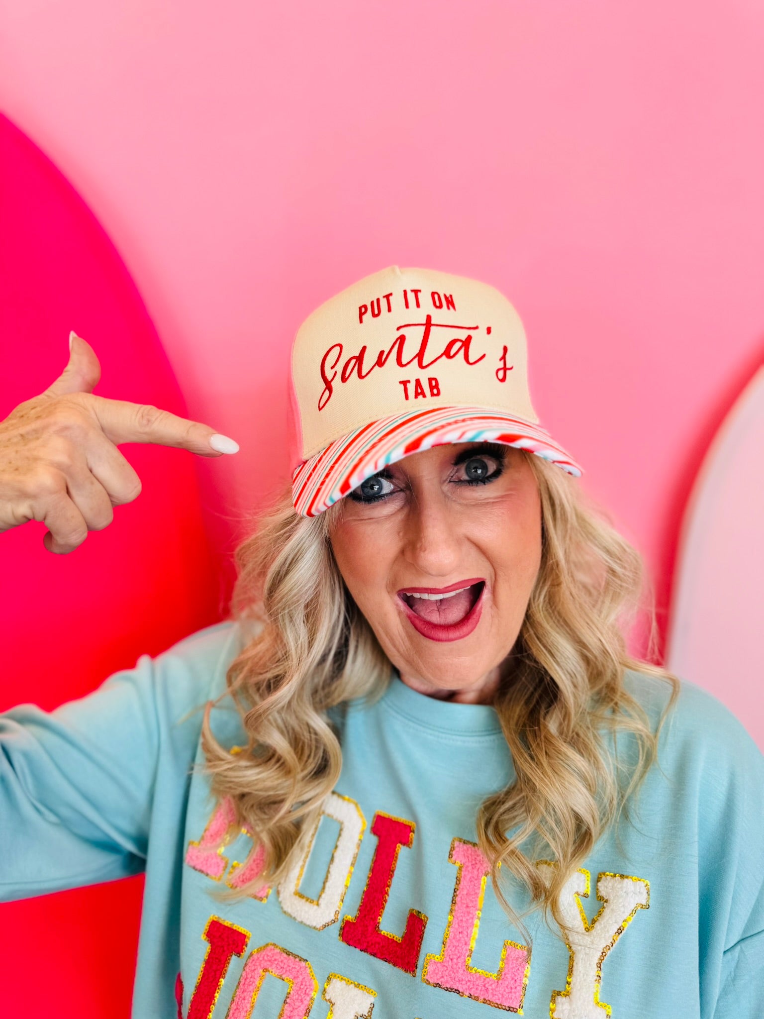 Add a playful dose of holiday humor to your wardrobe with the Put It on Santa’s Tab Hat! Designed with a crisp cream and pink canvas body, this festive cap features bold, embroidered lettering that says exactly what everyone’s thinking—Santa’s picking up the tab this season. The vibrant candy-striped bill adds a touch of Christmas whimsy, while the breathable mesh back and adjustable snap closure ensure a comfortable, easy fit for all-day wear. Whether you’re shopping, sipping cocoa, or spreading holiday cheer, this hat is the perfect mix of cheeky and cute. Pair it with your favorite Christmas sweatshirt or casual winter outfit for an effortlessly merry look.
