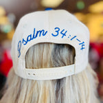 Share your faith in style with the Sought The Lord Trucker Hat, a meaningful accessory that blends inspiration with everyday wear. This canvas trucker hat features beautifully embroidered lettering on the front that reads “I Sought The Lord And He Heard And He Answered”, with Psalm 34:1–14 elegantly displayed on the back. Designed for comfort and versatility, it includes a breathable mesh back and adjustable snap closure for the perfect fit. Each hat is one-of-a-kind, as pattern placement on the bill may vary based on the fabric cut, adding a unique touch to every piece. Whether you’re running errands, heading to church, or gifting a loved one, this faith-inspired trucker hat is the perfect blend of purpose, comfort, and casual style.