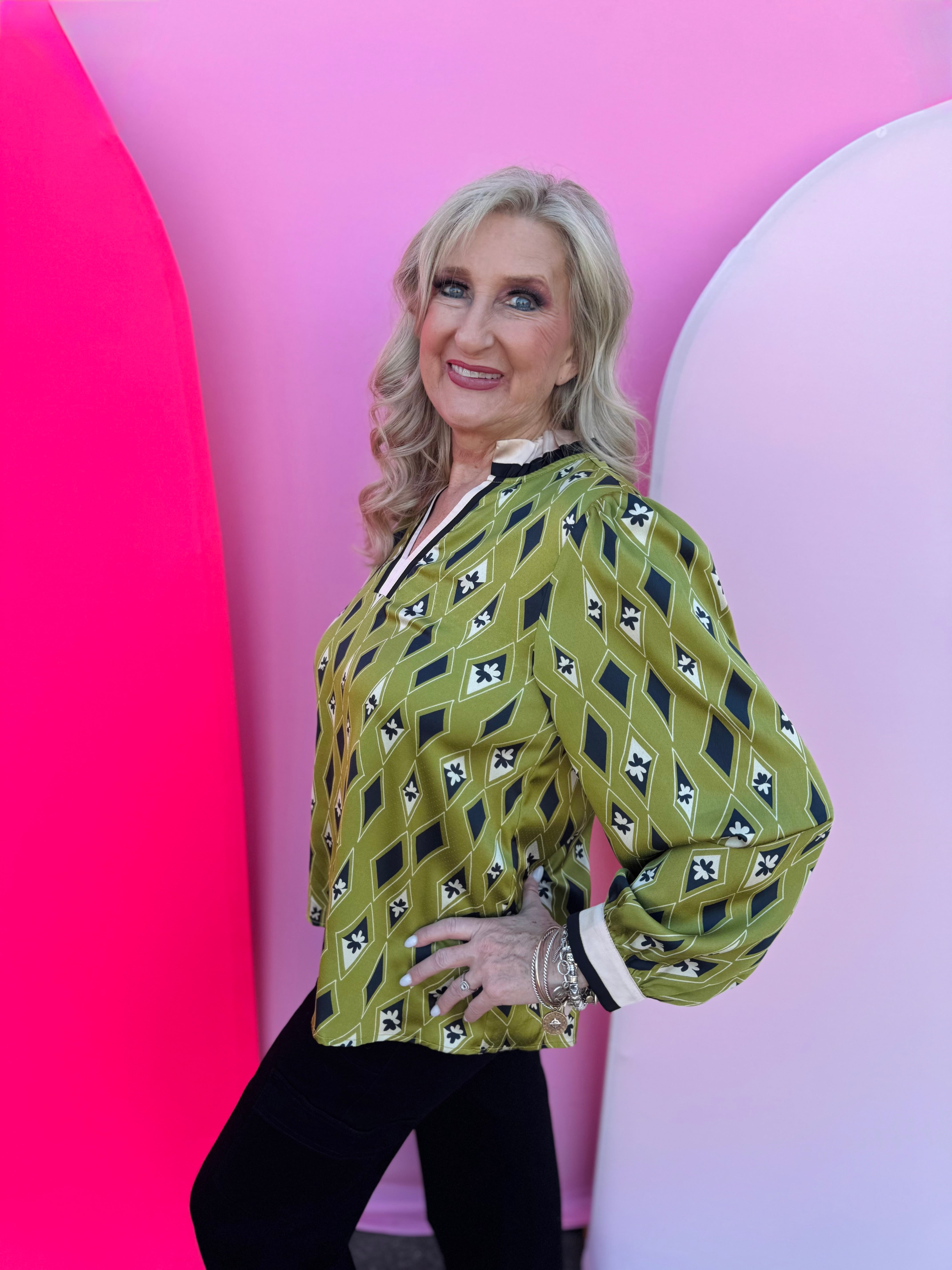 Queen Of Sparkles Light Pink & Red Stripe Christmas Icons Button Up Top