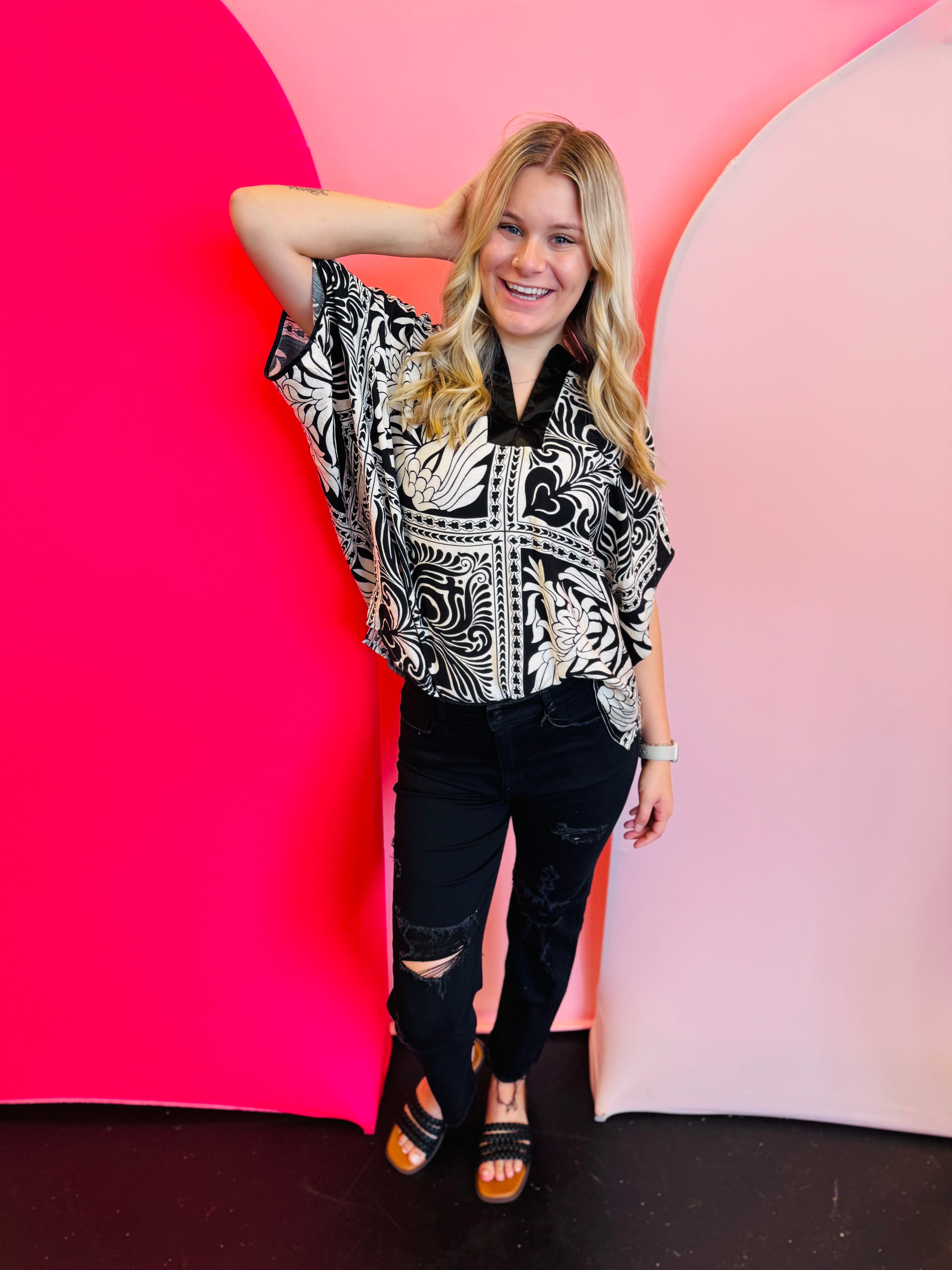 Black Marbled Bandanna Dolman Top