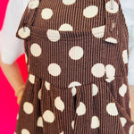 Step into effortless, vintage-inspired style with these Vintage Brown Polka Dot Ribbed Overalls, designed to deliver both comfort and standout charm. Crafted from premium-quality ribbed fabric in a soft, nostalgic polka dot colorway, these overalls are intentionally thick and never sheer, giving you confidence and coverage all day long. The structured yet stretchy material offers a flattering fit while allowing for easy movement, making them perfect for everyday wear, travel days, or styled-up casual outings.
