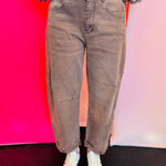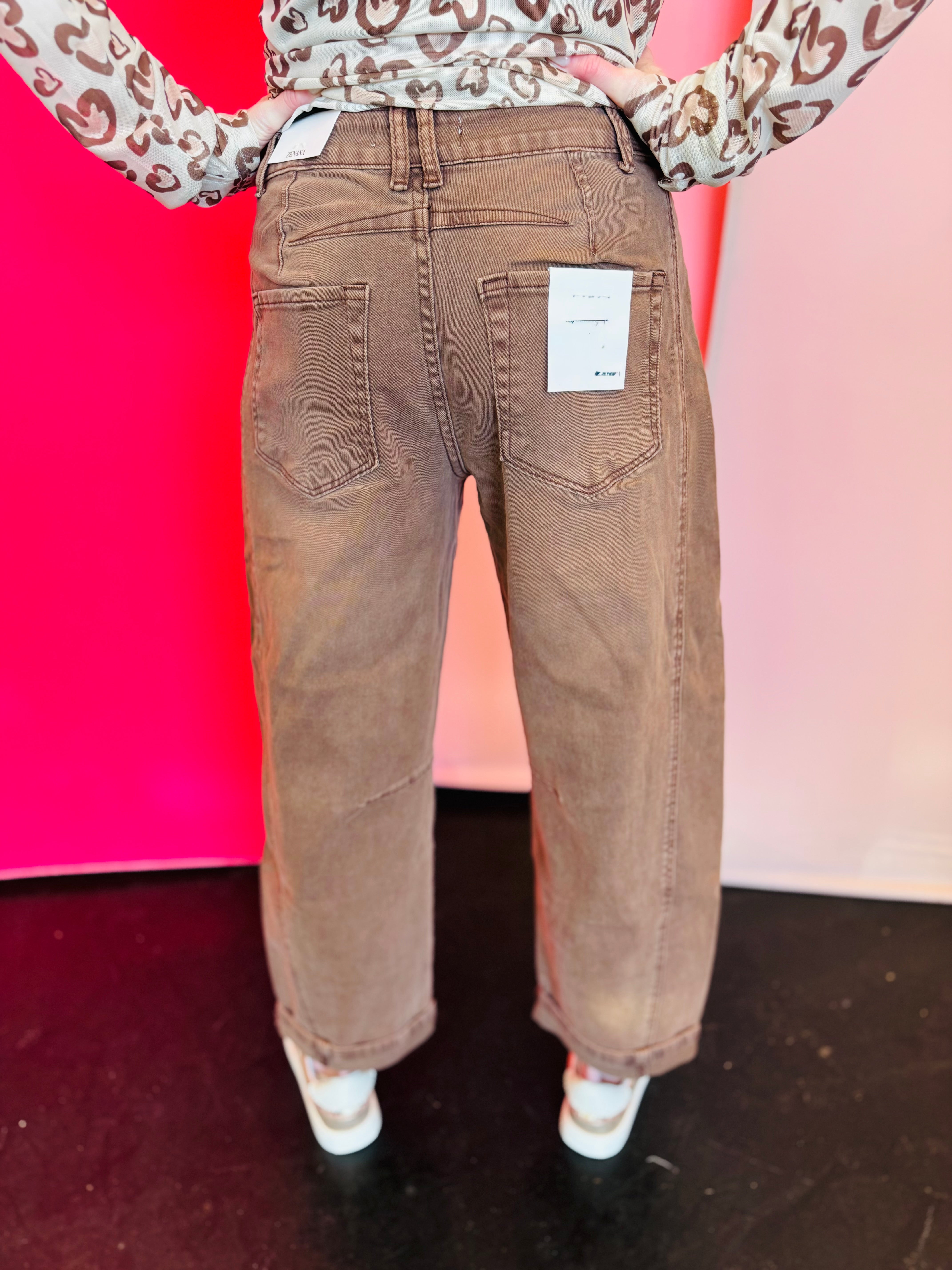 Add warm, earthy style to your everyday wardrobe with the Brown Cropped Barrel Pants, a modern essential designed to balance comfort, structure, and effortless versatility. Made from a soft cotton-spandex blend, these high-waisted pants provide just the right amount of stretch while maintaining a polished, fashion-forward silhouette. The relaxed barrel-leg shape tapers gently toward the ankle, creating a flattering fit that feels both contemporary and wearable, while the cuffed hem adds a styled, cropped finish.