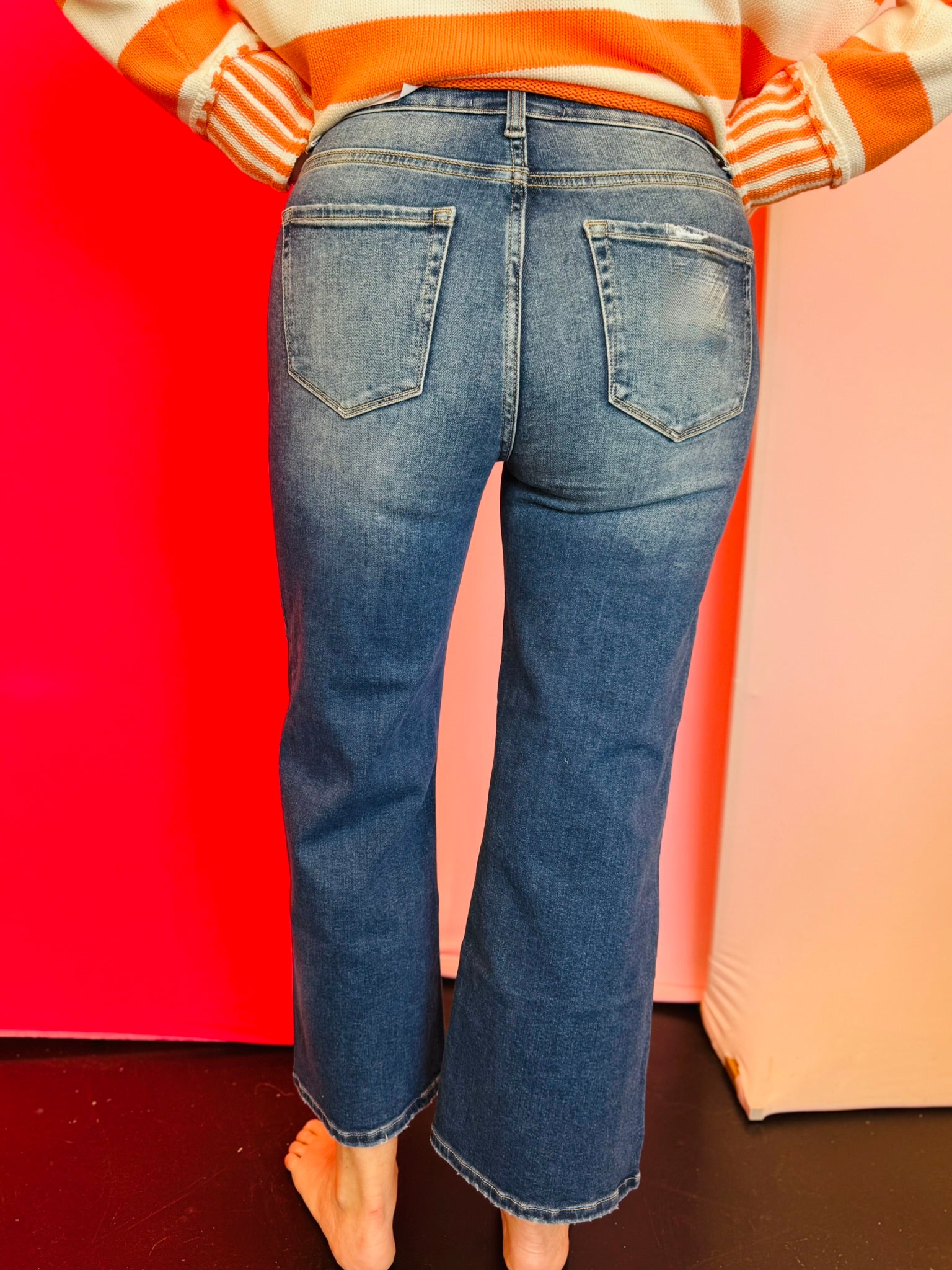 Elevate your casual style with our Distressed Raw Hem Jeans. These trendy denim pants feature a flattering straight-leg fit and a modern raw hem that hits just above the ankle, perfect for showcasing your favorite footwear. The distressed detailing adds a touch of edgy, laid-back character, while the soft, high-stretch denim ensures incredible all-day comfort.