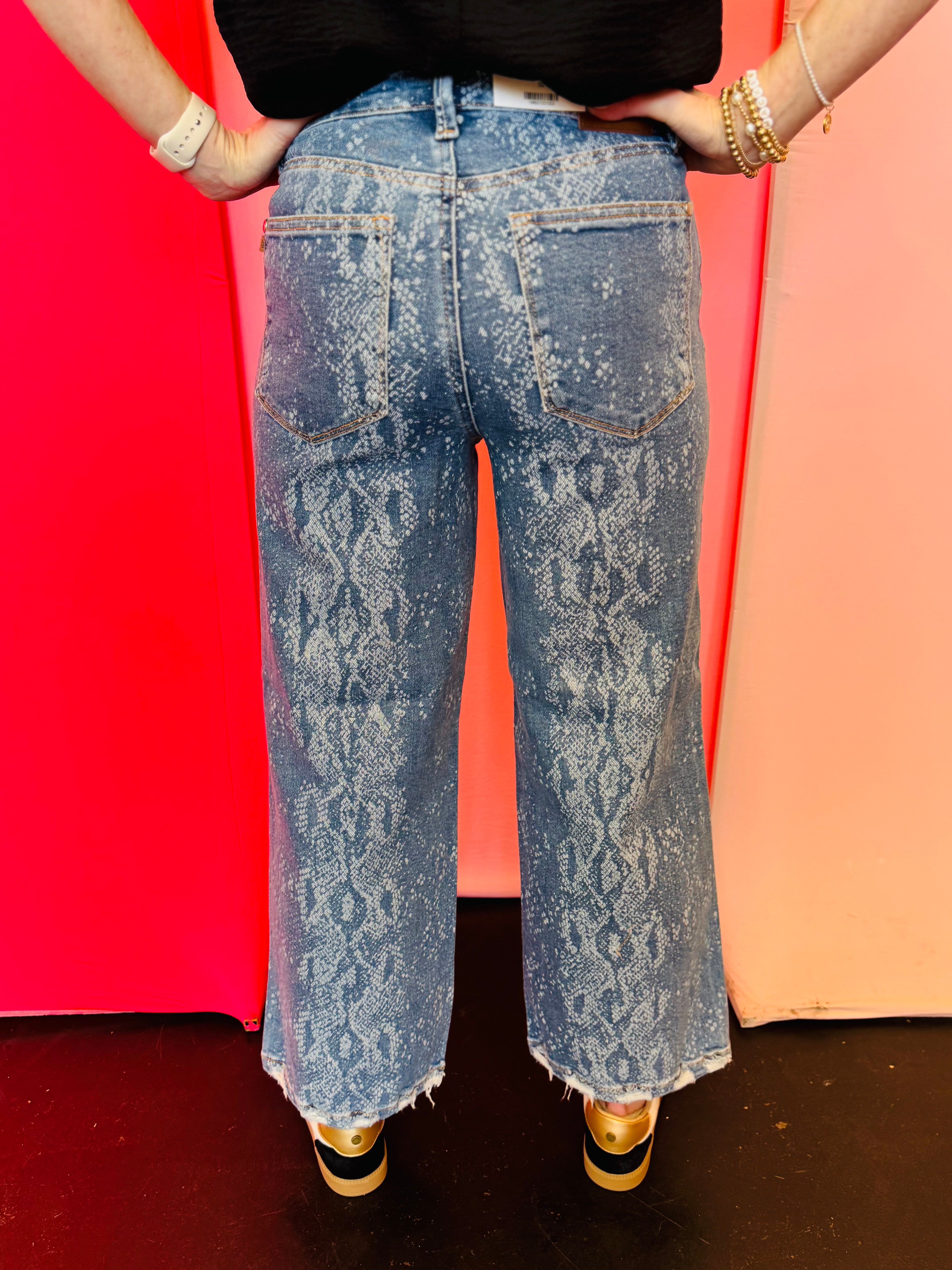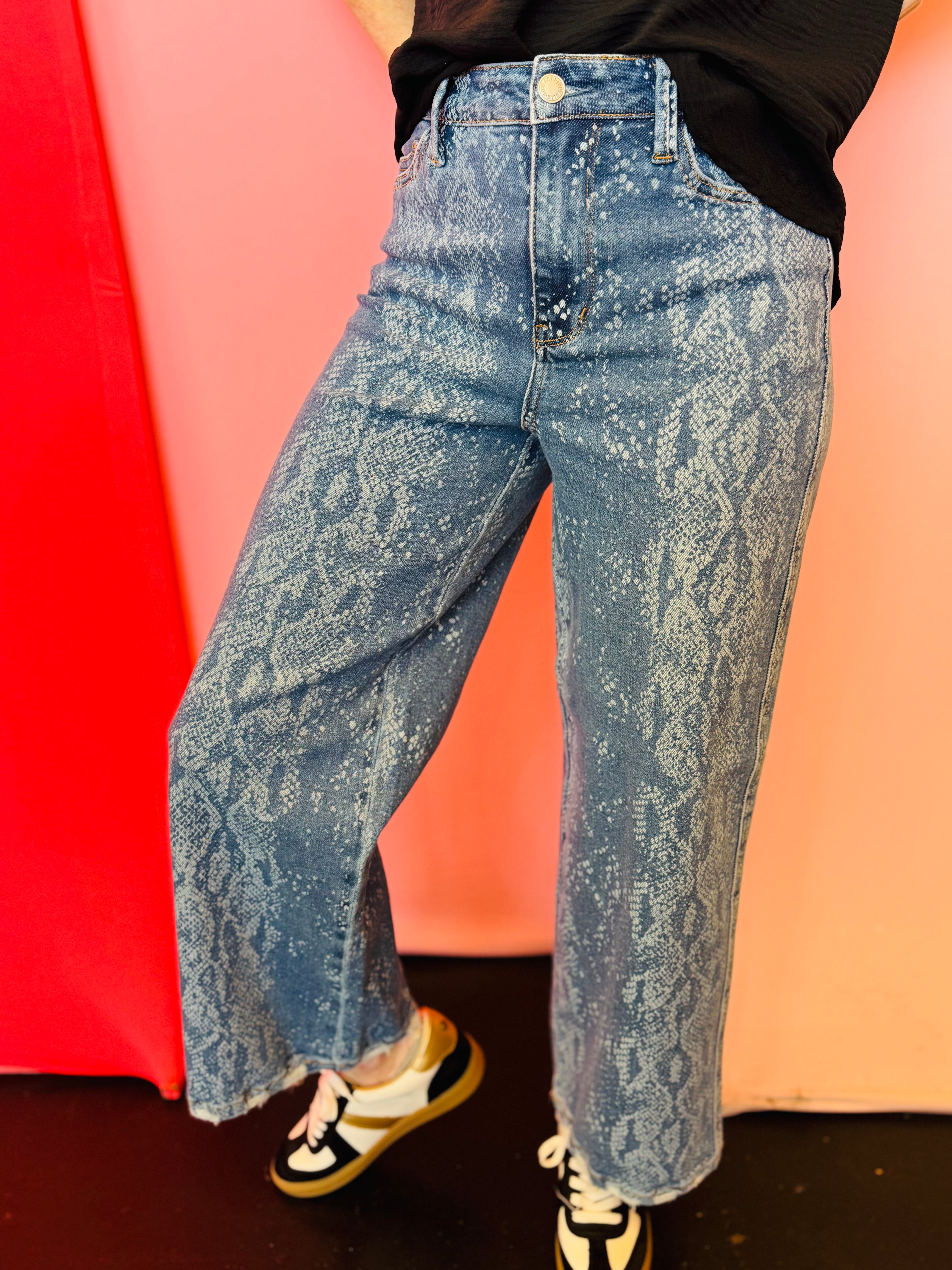 Looking for denim that stands out while still feeling comfortable and wearable? The Judy Blue Snake Print Ankle Wide Jeans bring modern style and everyday comfort together with a flattering, fashion-forward fit.