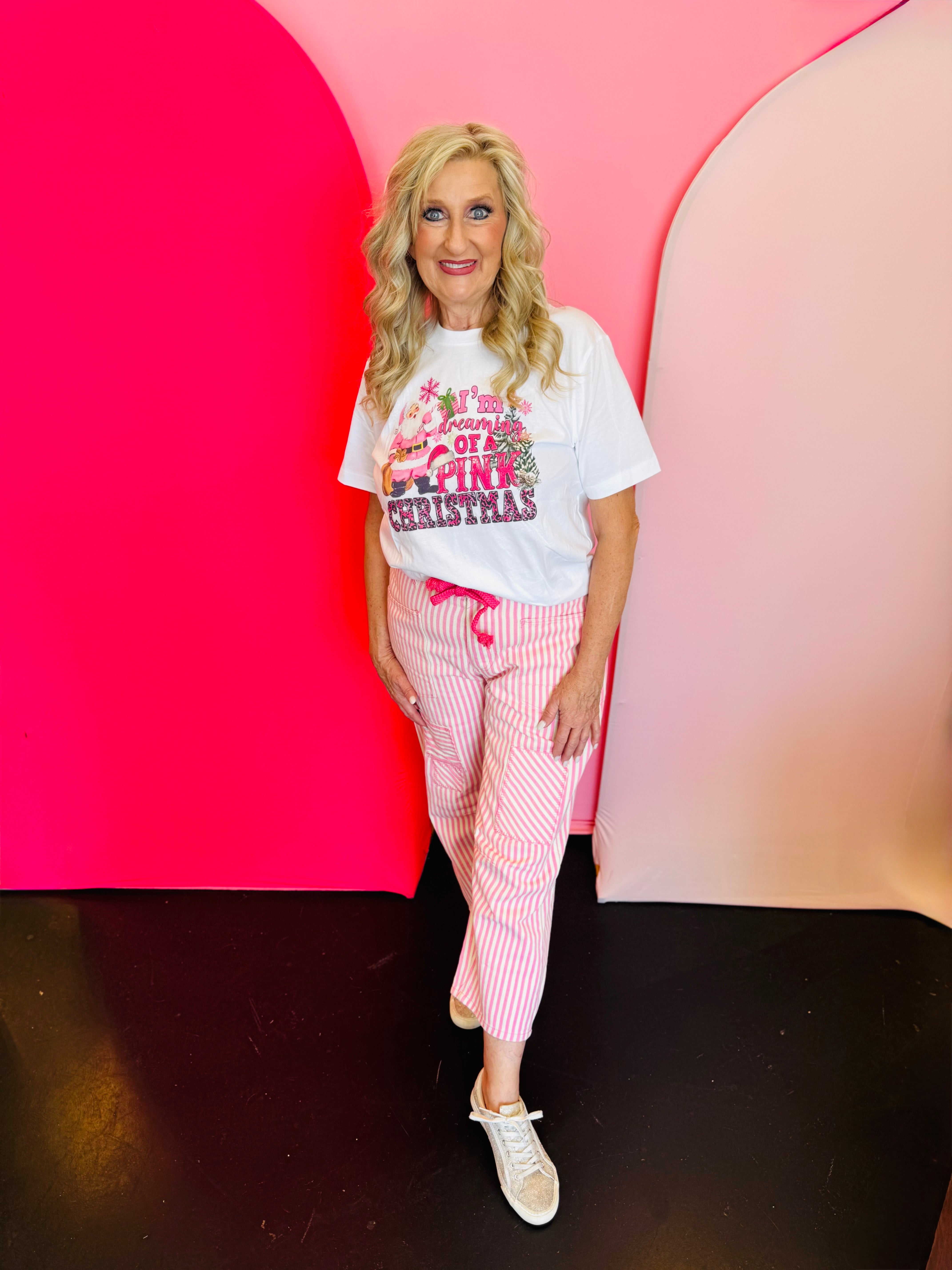 Pink Striped Twill Barrel Pants