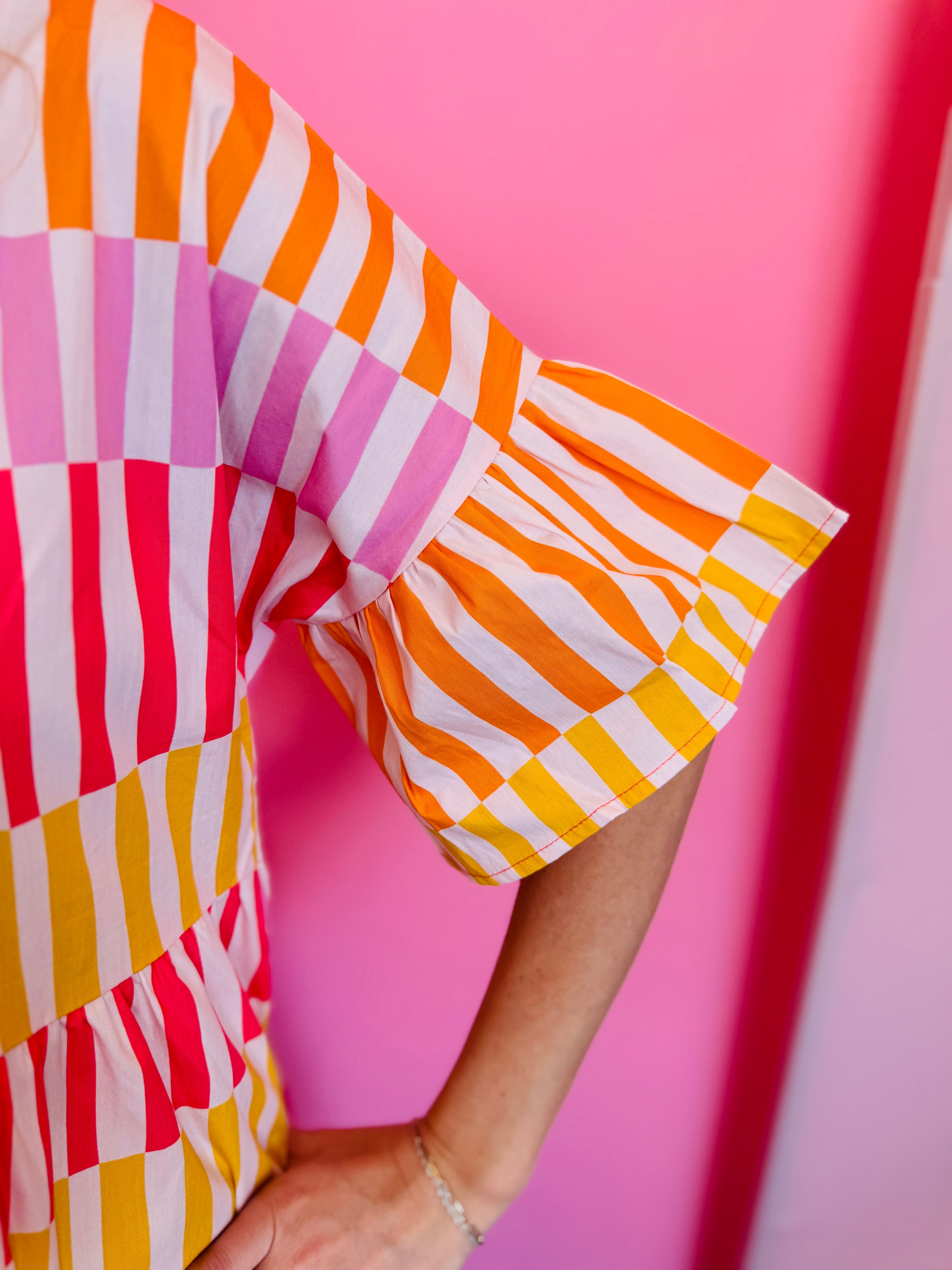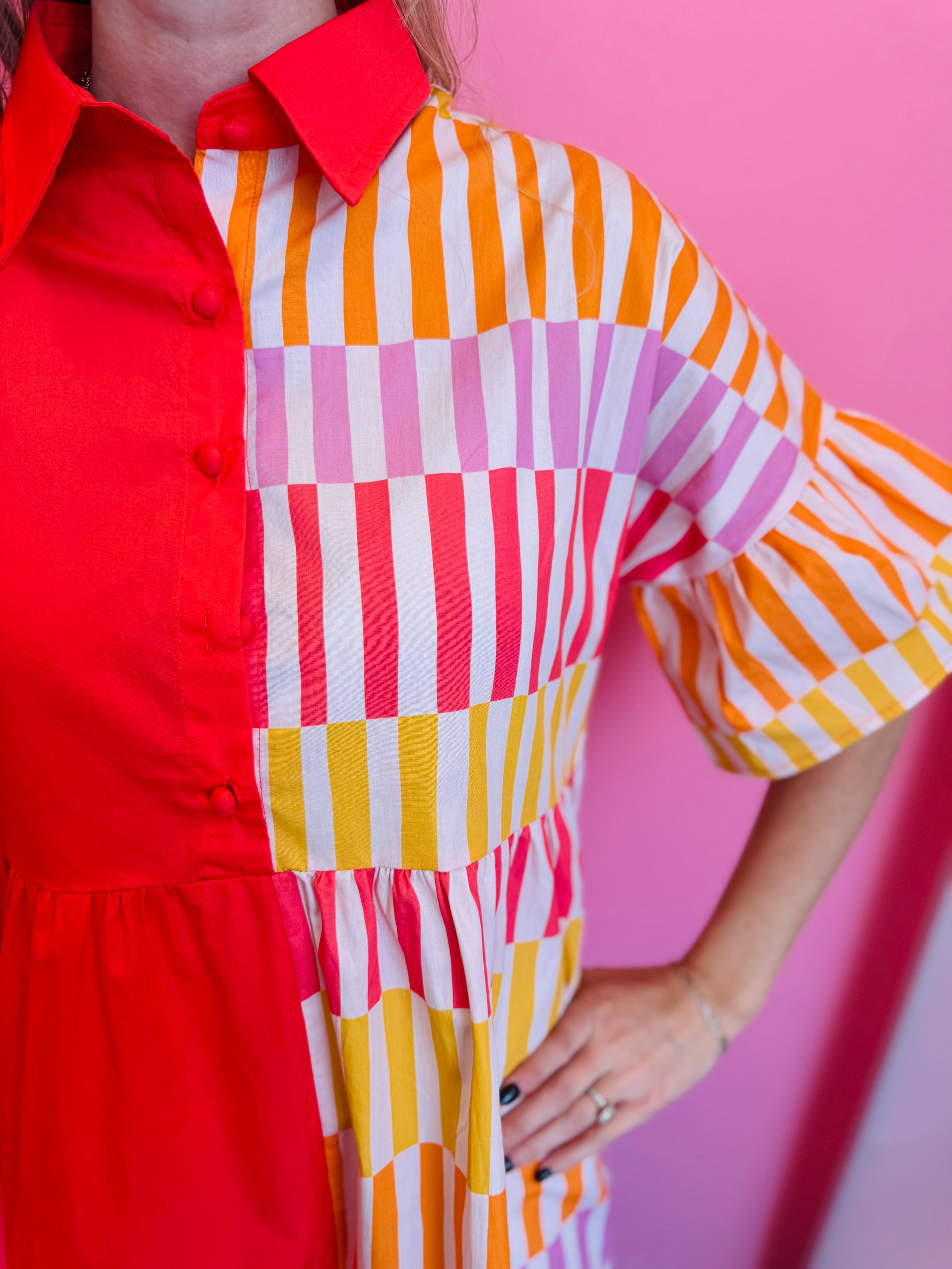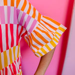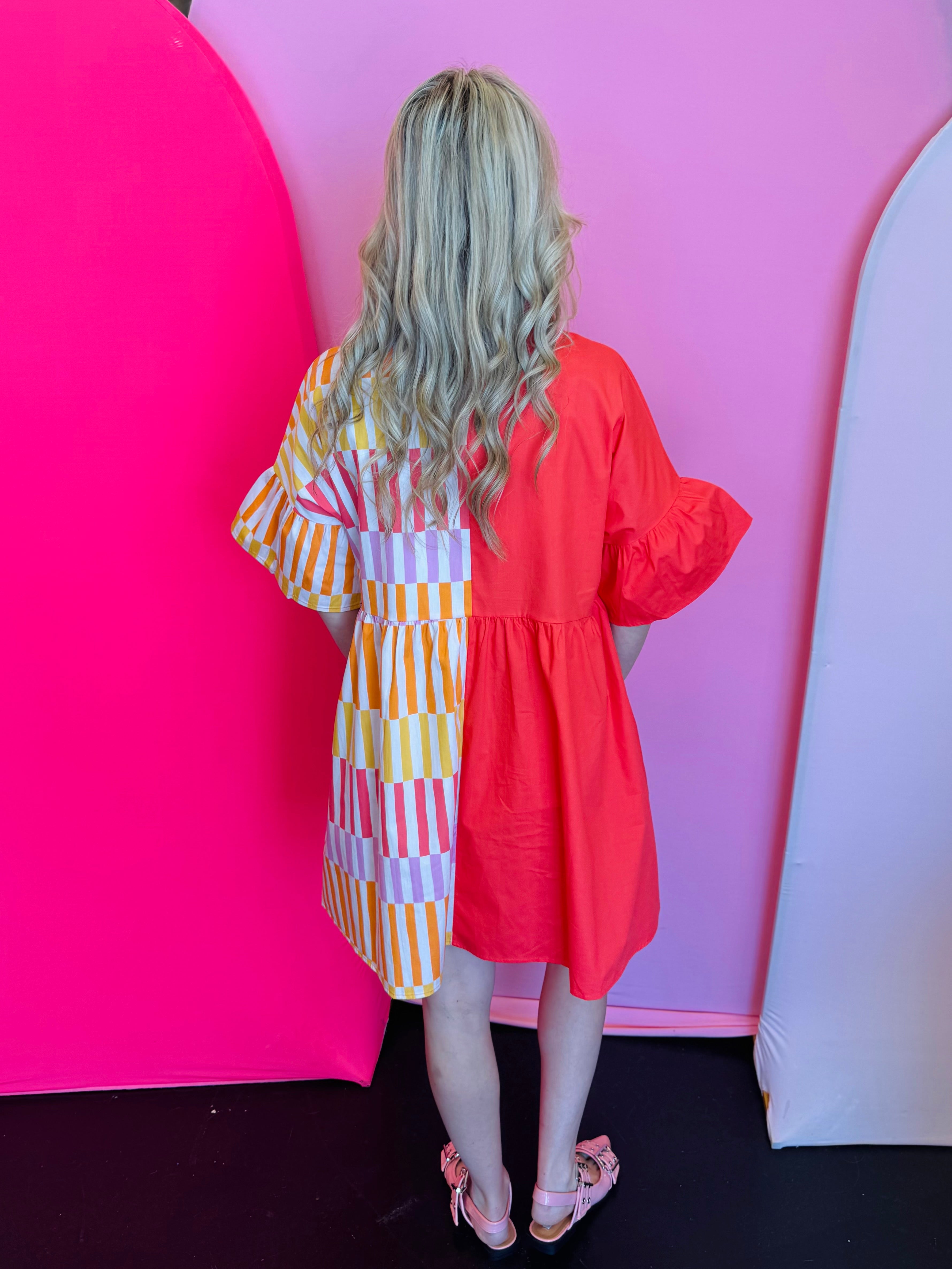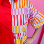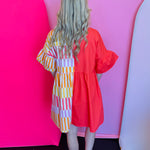 Meet your new sunshine-season favorite — the Coral New To Town Dress, a breezy, feel-good style made for warm days and effortless charm. Crafted from 100% lightweight cotton, this dress keeps you cool and comfortable from brunch dates to boutique-hopping Saturdays. The playful design features a striking half-solid, half-striped pattern that sets it apart from everyday dresses, adding texture, personality, and that signature Tootsie Lou’s flair.