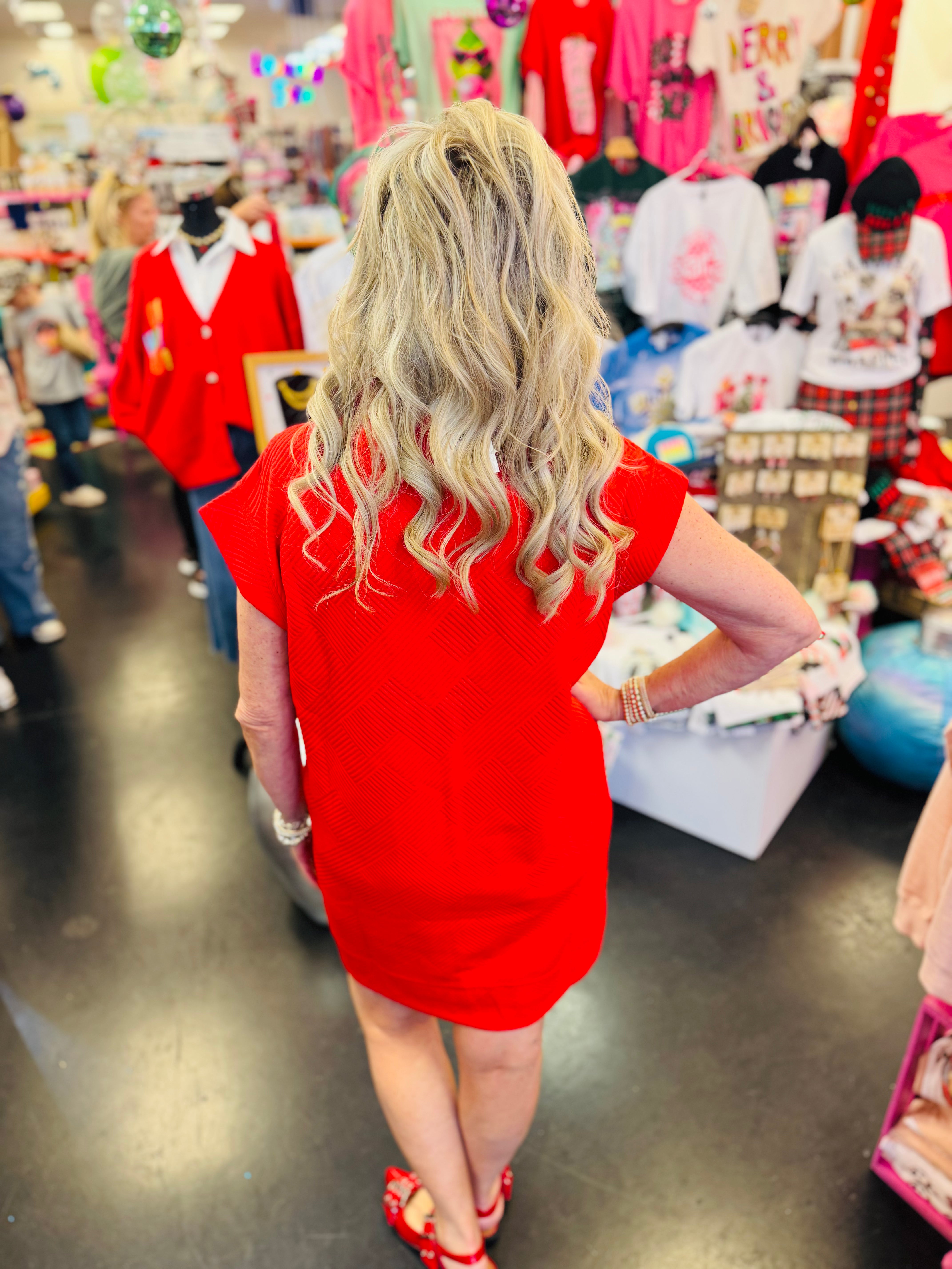 Step out in chic comfort with our Ruby Red Quarter Zipper Mini Dress, a textured knit jacquard piece designed for modern style. This versatile mini dress features a sophisticated quarter-zipper neckline, allowing for adjustable styling. Practical side pockets add a touch of functionality, while the trendy high-low hem and side slits ensure easy movement and a flattering silhouette. With a chest measurement of 44" (approx. from Small), this dress offers a comfortable yet refined fit. It provides both comfort and subtle stretch, perfect for any occasion, transitioning seamlessly from a casual day out to an evening gathering. This stylish and practical dress is a must-have for your contemporary wardrobe.