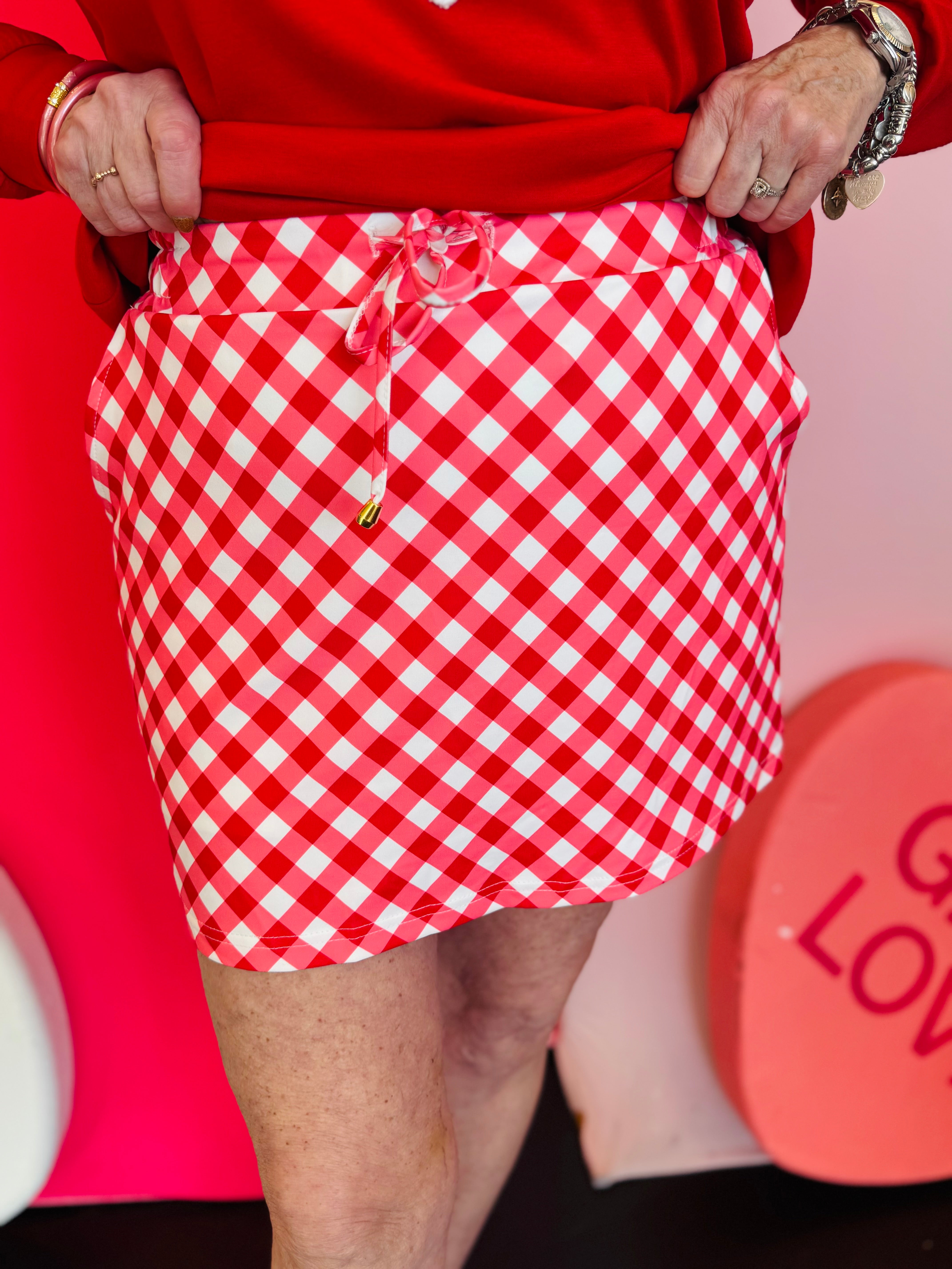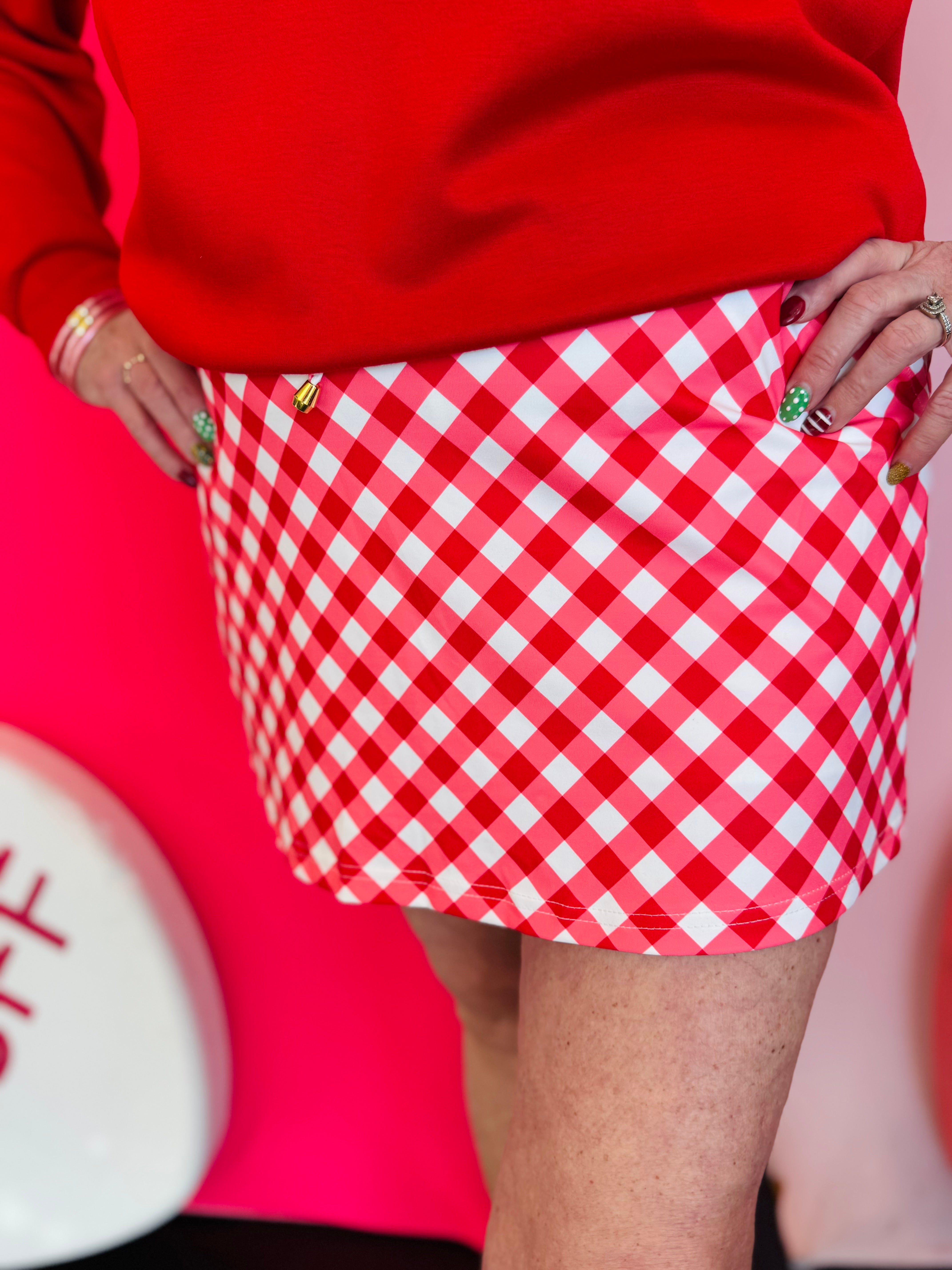 Red Diagonal Gingham Skort