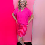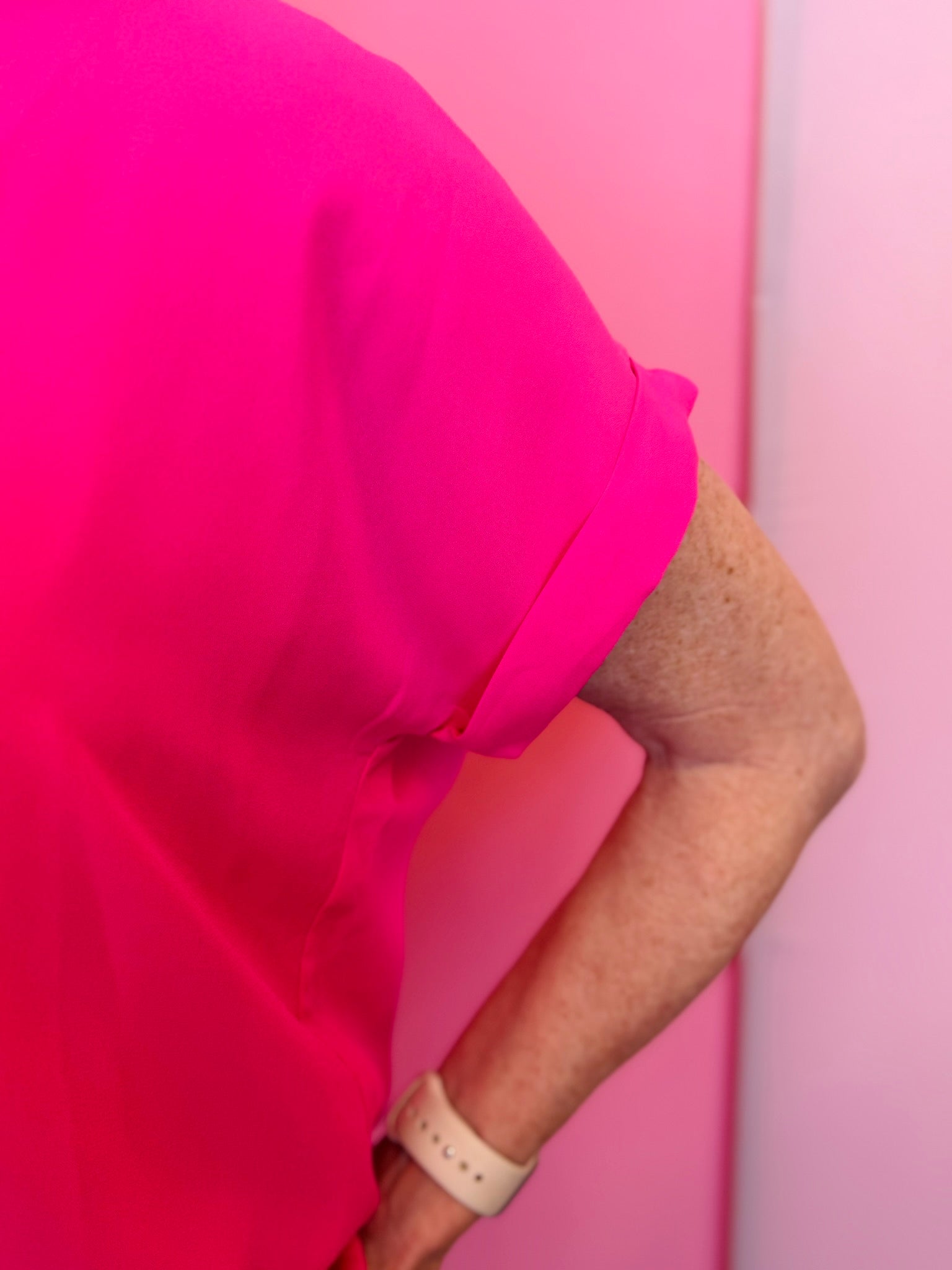 Brighten your wardrobe with the Fuchsia Whitney Woven Blouse, a bold and elegant essential designed to stand out in all the right ways. Crafted from a lightweight, soft woven fabric, this blouse drapes effortlessly, offering a flattering and polished silhouette that transitions seamlessly from workdays to weekends. The modern V-neckline enhances the feminine shape, while the cuffed short sleeves add structure and refinement to the overall look. The vibrant fuchsia hue brings a refreshing pop of color, making it perfect for pairing with denim, trousers, skirts, or layering under blazers for a chic, elevated style. Made from 100% polyester, the Whitney Woven Blouse delivers comfort, breathability, and timeless versatility for any season.