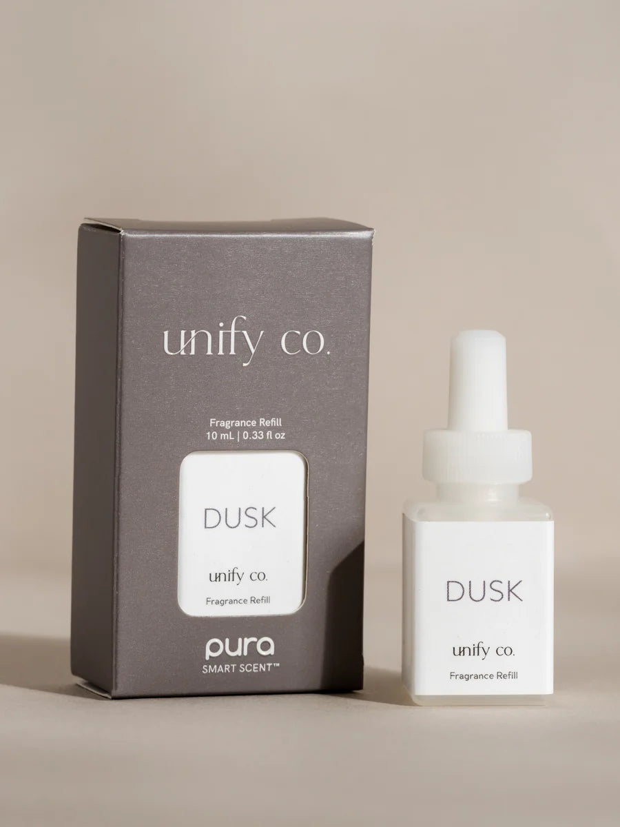 As the fragrance settles, earthy patchouli, creamy sandalwood, praline musk, amber, and coconut create a warm, sensual finish that lingers beautifully. Dusk feels sophisticated, spicy, and quietly glamorous—perfect for bedrooms, living spaces, or any room where you want to create a cozy, romantic ambiance. Like all Pura fragrances, Dusk is thoughtfully crafted without harsh chemicals and made using safe, ethically sourced ingredients for a clean, elevated scent experience.
