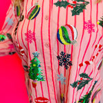 Queen Of Sparkles Light Pink & Red Stripe Christmas Icons Button Up Top