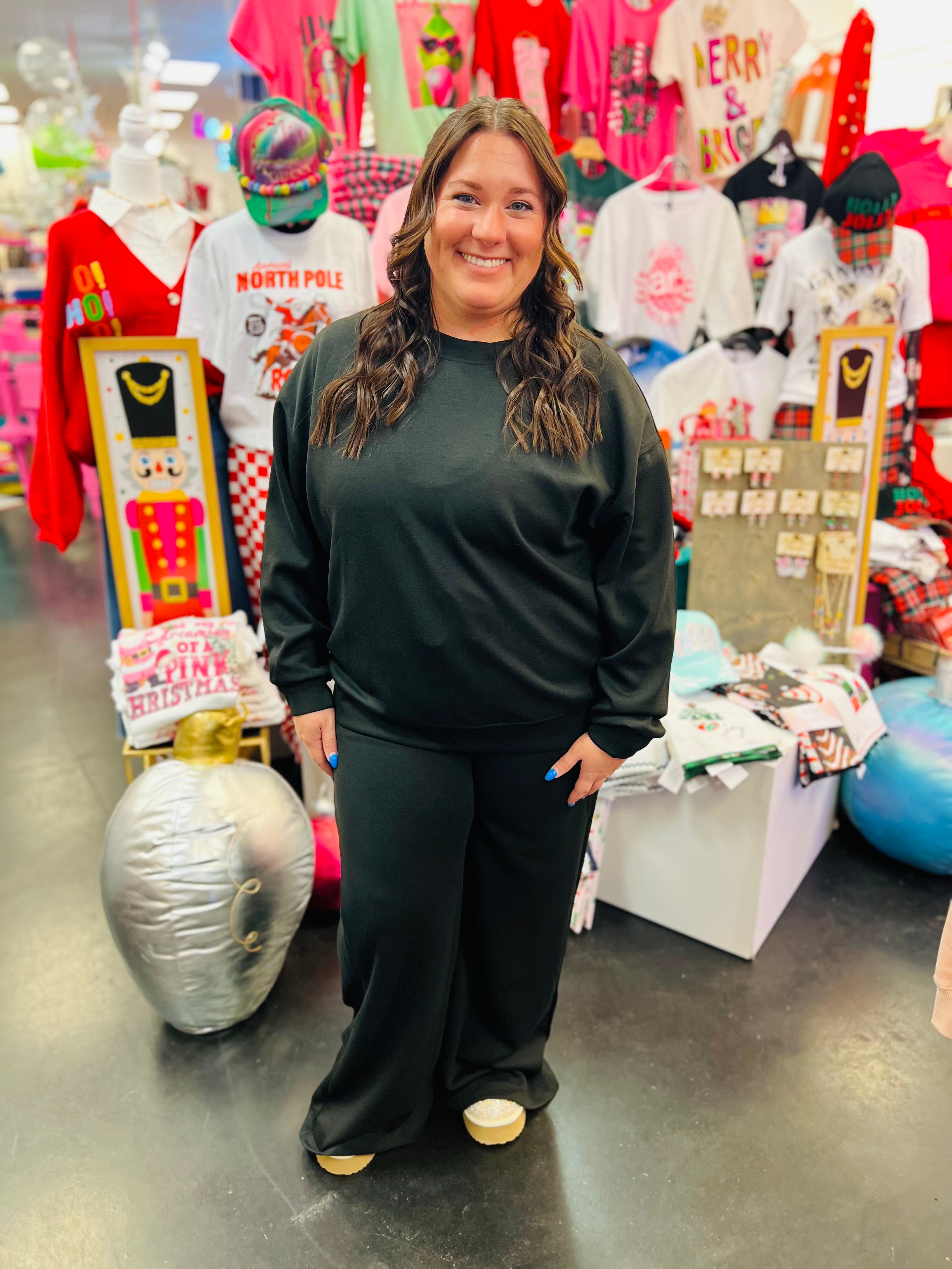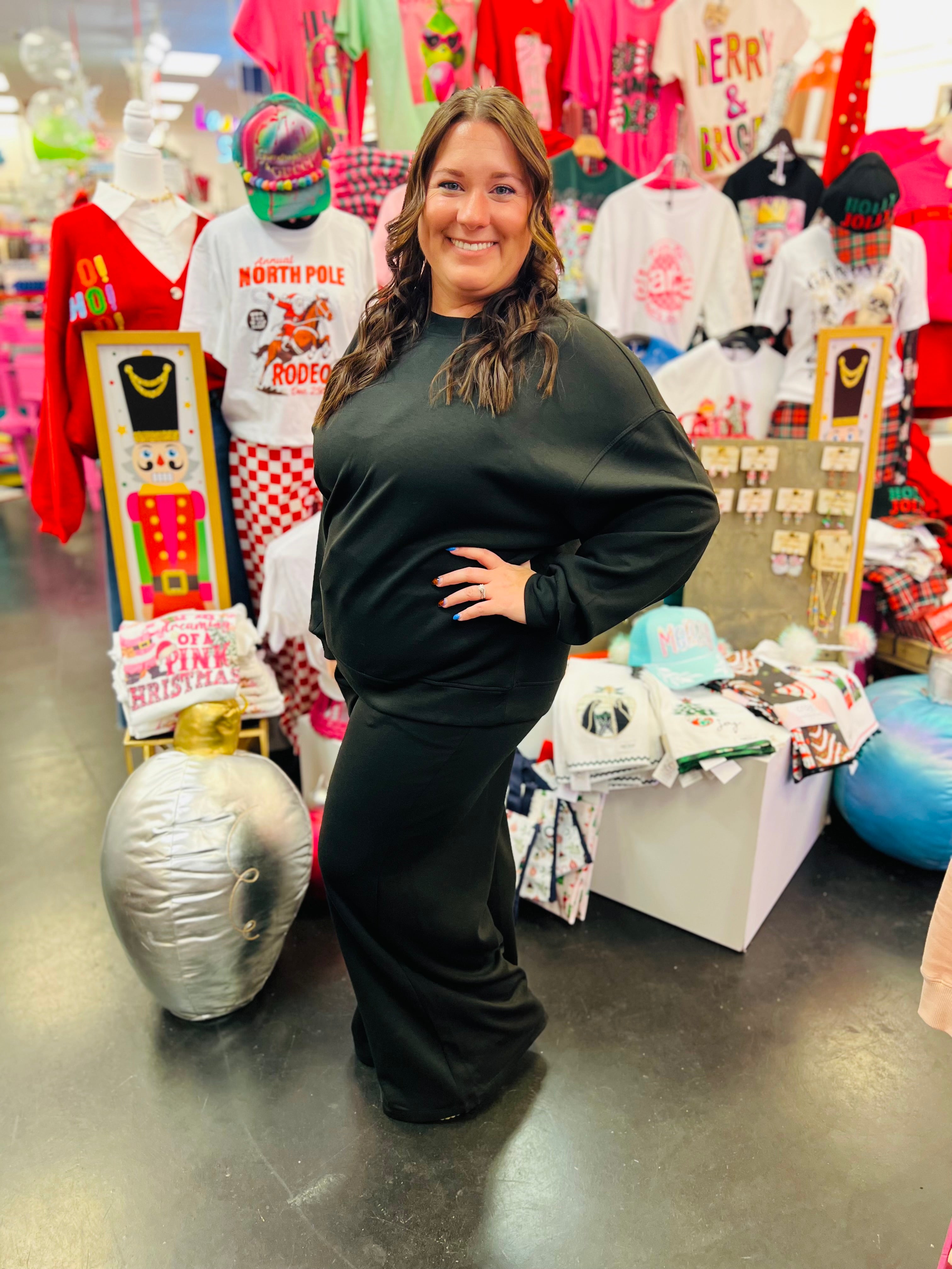 Black Scuba Crewneck Pullover Pants Set (Curvy)