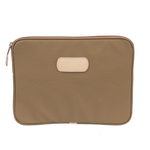 Stay protected and polished with our 15" Padded Computer Case. Crafted from durable coated canvas and finished with natural leather trim, this sleeve is perfect for laptops up to 15” wide (measured horizontally). Since advertised laptop sizes use diagonal measurements, be sure to check the actual width of your device for the best fit.