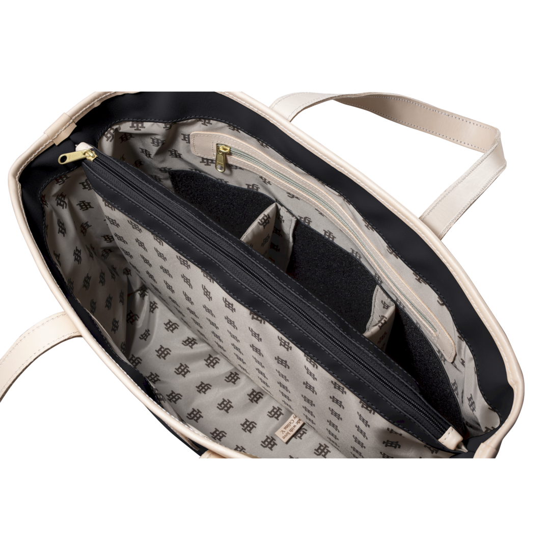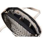 The Jon Hart Bebita Tote is the ultimate blend of style and function for busy parents. Designed to transition seamlessly from a diaper bag to a chic tote, it keeps you organized without sacrificing elegance. The spacious interior features multiple pockets for bottles, diapers, and essentials, plus a large center zippered pocket that includes a custom diaper pad. Adjustable velcro dividers let you customize compartments to your needs, making it perfect for parents on the go. Handmade with care, this versatile tote offers both durability and timeless design.
