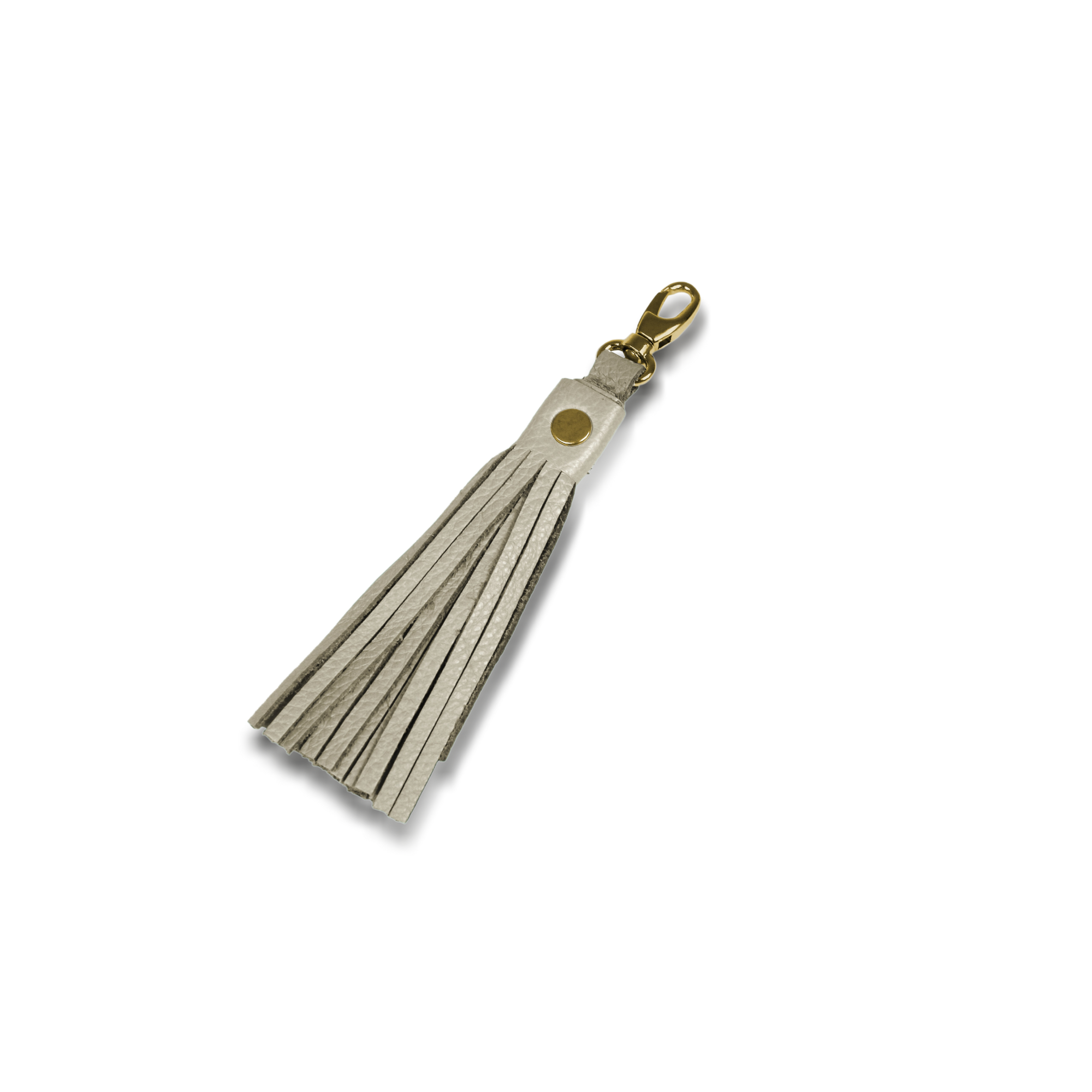 Dress up your bag or pouch with these all-leather tassels. Gold-colored hardware includes a spring clasp and rivet.