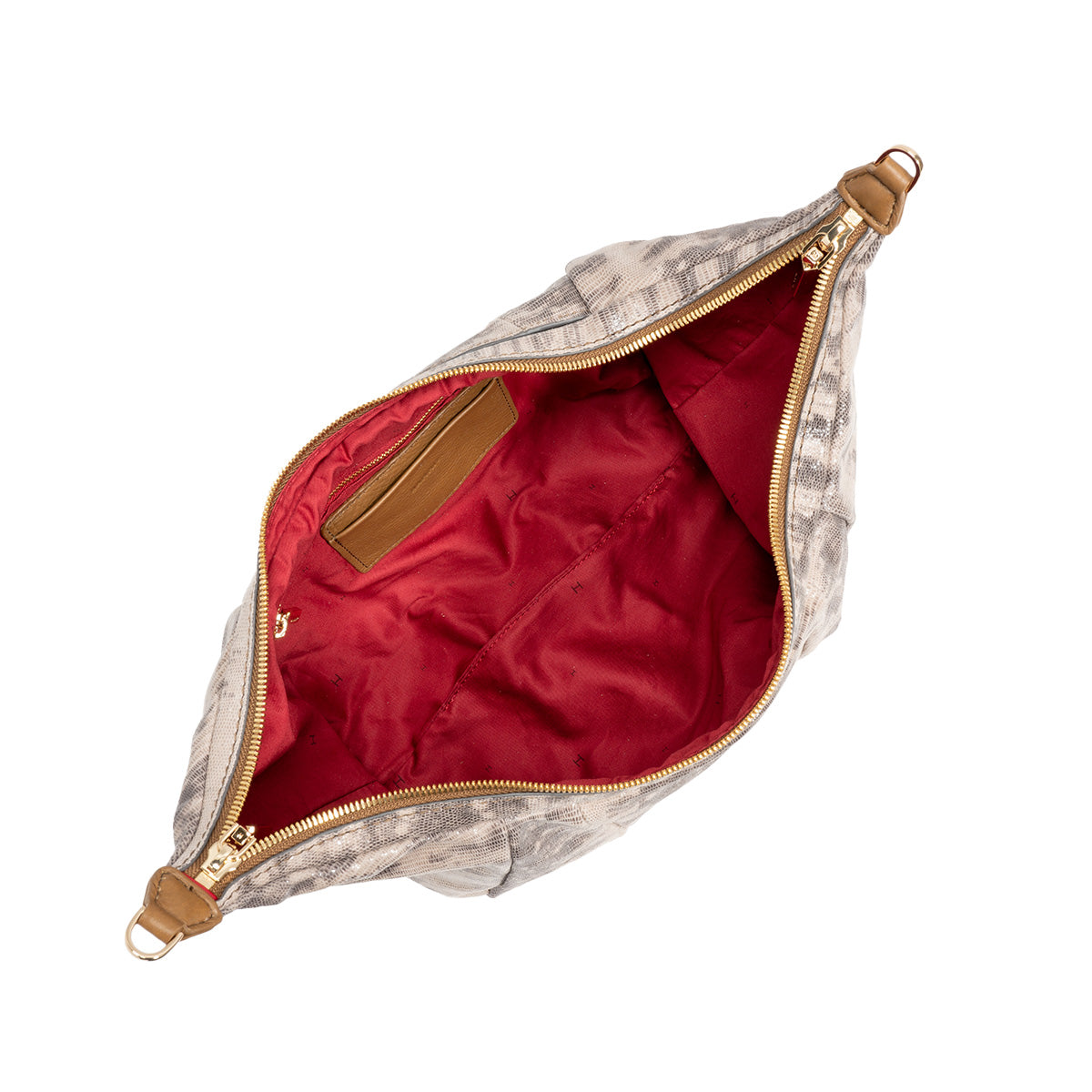 Experience sophistication and craftsmanship at its finest with the Hammitt Morgan Spotted Smoke Gold shoulder bag — a true statement of luxury and timeless design. This taupe and charcoal metallic leather bag features a soft shimmer finish with a subtle textured spotted pattern, exuding understated glamour with every detail. Meticulously artisan-crafted from premium, buttery-soft genuine leather, it’s adorned with brushed gold hardware guaranteed for life, offering both elegance and durability. The curved silhouette and wide strap provide a comfortable yet elevated fit, while thoughtful touches like a zip-top closure, exterior snap pocket, and interior pocket ensure practical organization. The signature red lining and interior card holder complete this polished, versatile piece — a perfect blend of modern luxury and everyday function.