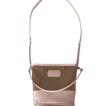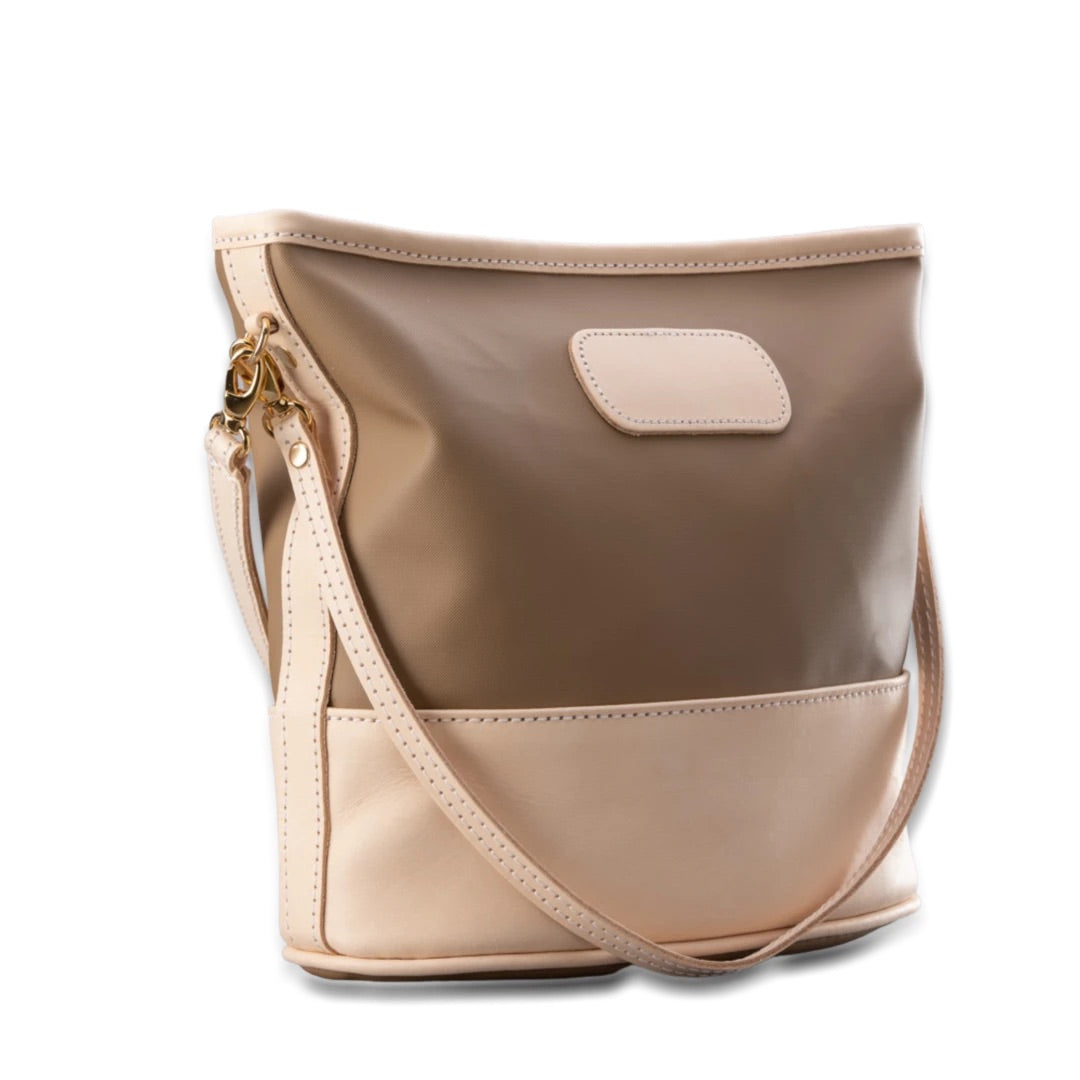 Meet the Jon Hart Letita Handbag, the perfect bucket bag that balances timeless beauty with everyday versatility. Handcrafted in Texas from Jon Hart’s signature durable coated canvas, this classic silhouette is elevated with rich natural leather trim that softens and patinas beautifully with age. The fully lined interior is thoughtfully designed with pockets for organization, while the secure zippered closure keeps your essentials safe. Two included straps give you styling flexibility—wear it as a comfortable crossbody handbag for hands-free ease, or switch to the shorter strap for a snug shoulder bag look. Sized to carry everything you need without bulk, the Letita transitions seamlessly from work to errands to weekends away.