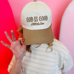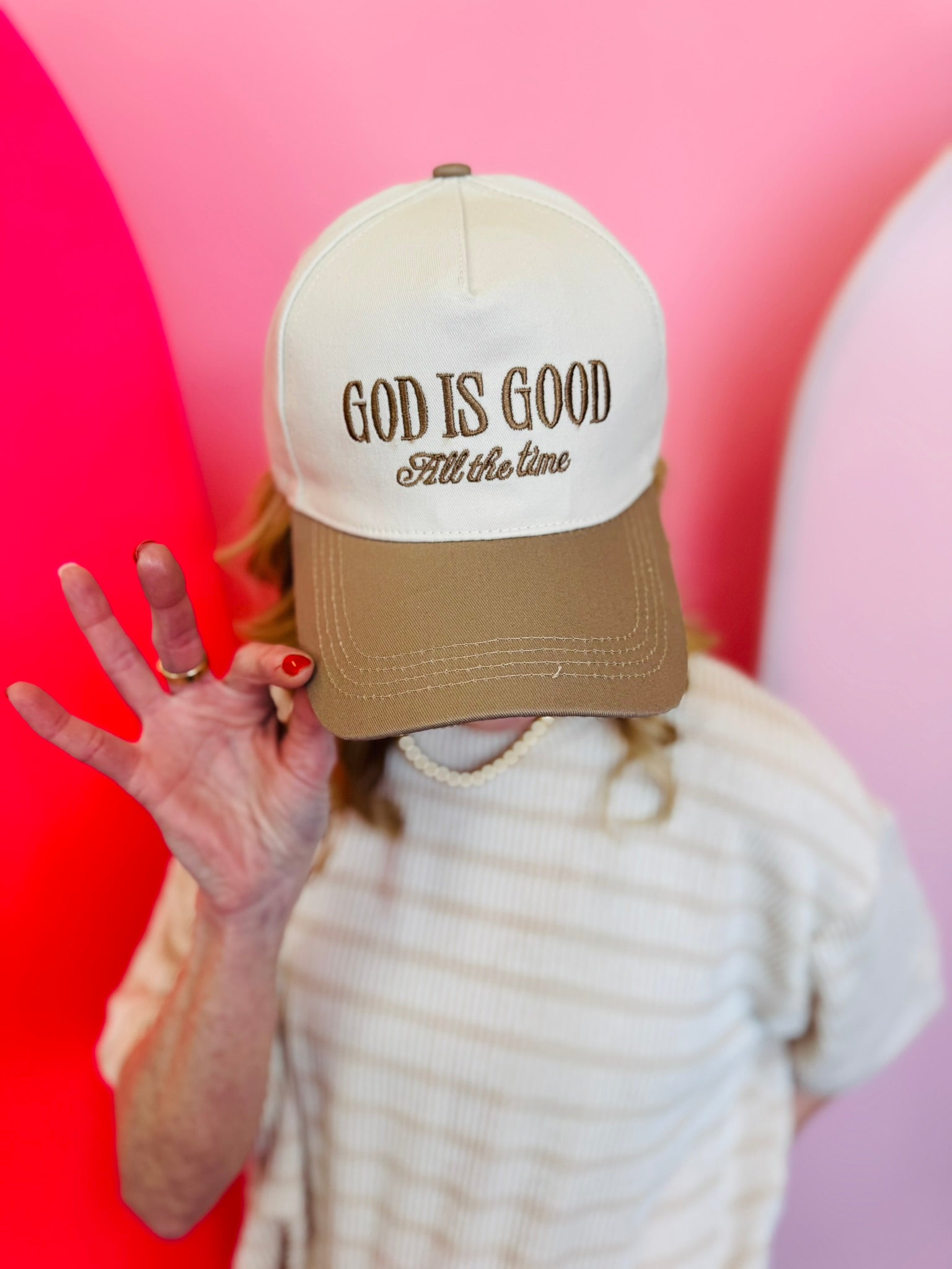 Share your faith in style with our God Is Good Trucker Hat, a meaningful and modern accessory designed for everyday wear. This two-tone canvas cotton cap features the powerful embroidered message “God Is Good All The Time” showcased on a neutral ash-mocha base that pairs effortlessly with any outfit. Lightweight, breathable, and perfect for all seasons, this hat offers a trendy yet timeless look you can wear to workouts, errands, game days, church events, or weekend outings. The adjustable strap with metal buckle ensures a comfortable, customizable fit, while the durable cotton material provides long-lasting wear. With a 22–25" circumference and 2.35" brim, this faith-based trucker hat gives you style, comfort, and inspiration wherever you go.