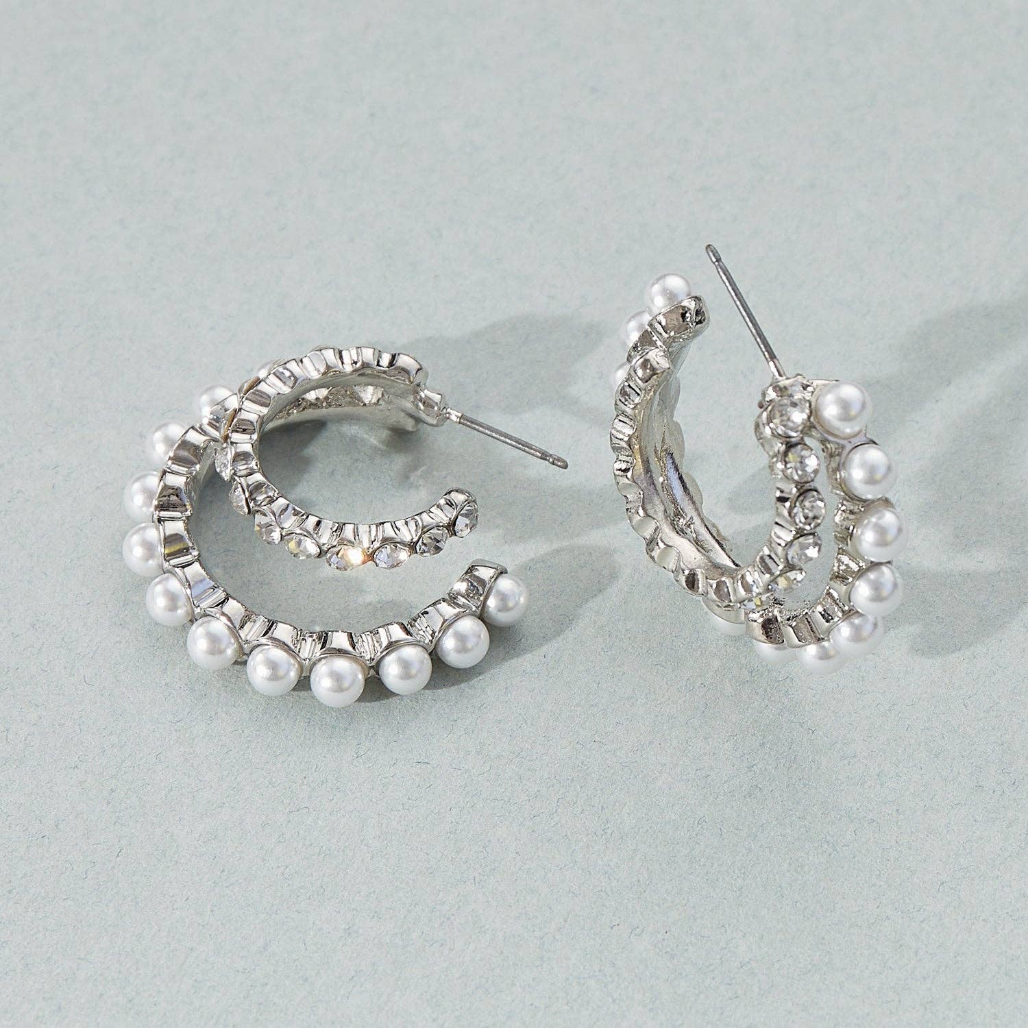 Gold Beaded CZ Hoop Earrings (Water Resistant)