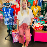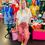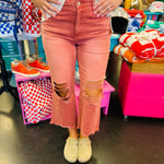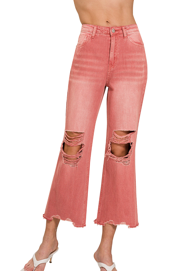 Upgrade your denim collection with our Cabernet Washed Distressed Jeans—where edge meets effortless style. Crafted from 100% cotton, these jeans feature a rich cabernet wash and just-right distressing at the knee and hem for that perfectly broken-in vibe. The cropped length adds a trendy twist, ideal for showing off your favorite sneakers, booties, or sandals. Whether you're dressing up for brunch or keeping it casual for errands, these jeans offer versatility, comfort, and undeniable cool. Their lived-in feel and flattering cut will quickly make them a wardrobe go-to!
