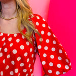 Vibrant Red Polka Dot Print: A timeless pattern that makes a statement while remaining classic.