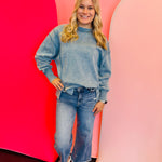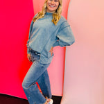 Stay cozy and effortlessly stylish with our Blue Grey Acid Wash Bottom Band Exposed-Seam Fleece Sweatshirt—a must-have for casual days, weekend errands, and on-trend loungewear looks. This sweatshirt combines comfort with an edgy, streetwear vibe. The blue grey acid wash finish creates a unique, vintage-inspired look, while exposed seam details add texture and dimension. A relaxed fit and side slits provide easy movement and a flattering drape, making it perfect to layer over leggings, biker shorts, or high-waisted jeans. With a total body length of 26.5" (front) and chest of 48" approx. (measured from Small), this sweatshirt delivers all-day comfort and a fashion-forward edge—ideal for lounging, travel, or everyday streetwear styling.