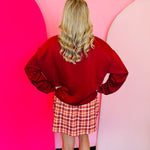 Burgundy Plaid Thanks Patch Fall Pullover – Effortless Autumn Style