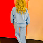 The Cornflower Blue Ribbed Round Neck Pullover & Pants Set delivers effortless, trend-right style with the perfect blend of cozy warmth and everyday versatility.