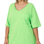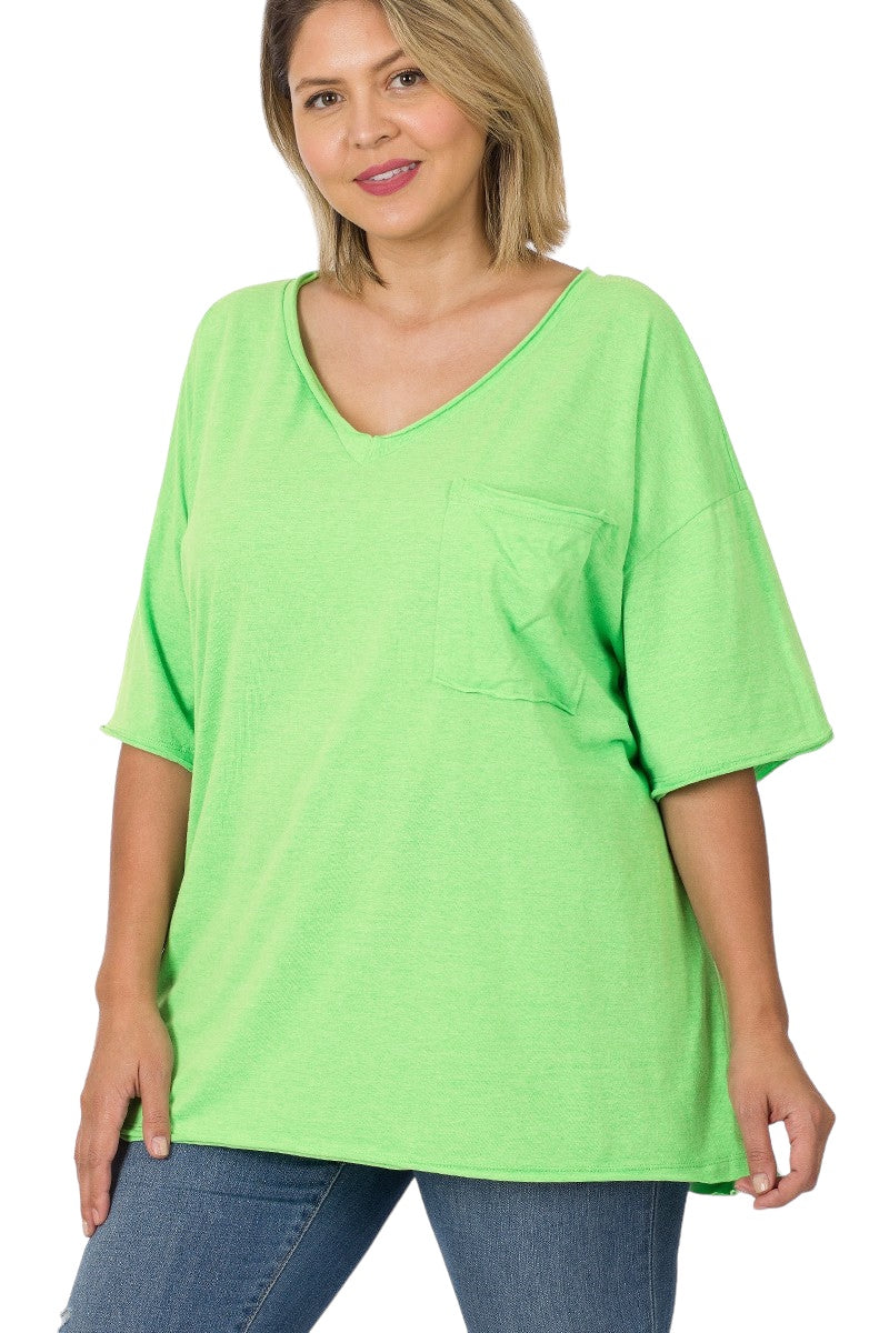 Unleash your carefree side with our Hunter Green Oversized Tee! Featuring a roomy front pocket, raw edges, and a relaxed boyfriend fit, this 100% cotton V-neck is perfect for lounging or running errands. A stylish and comfortable addition to any wardrobe!
