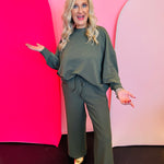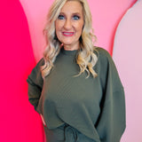 The Dark Olive Ribbed Round Neck Pullover & Pants Set delivers effortless, trend-right style with the perfect blend of cozy warmth and everyday versatility.