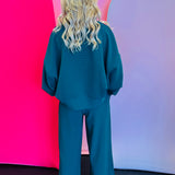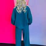 The Hunter Green Ribbed Round Neck Pullover & Pants Set delivers effortless, trend-right style with the perfect blend of cozy warmth and everyday versatility.