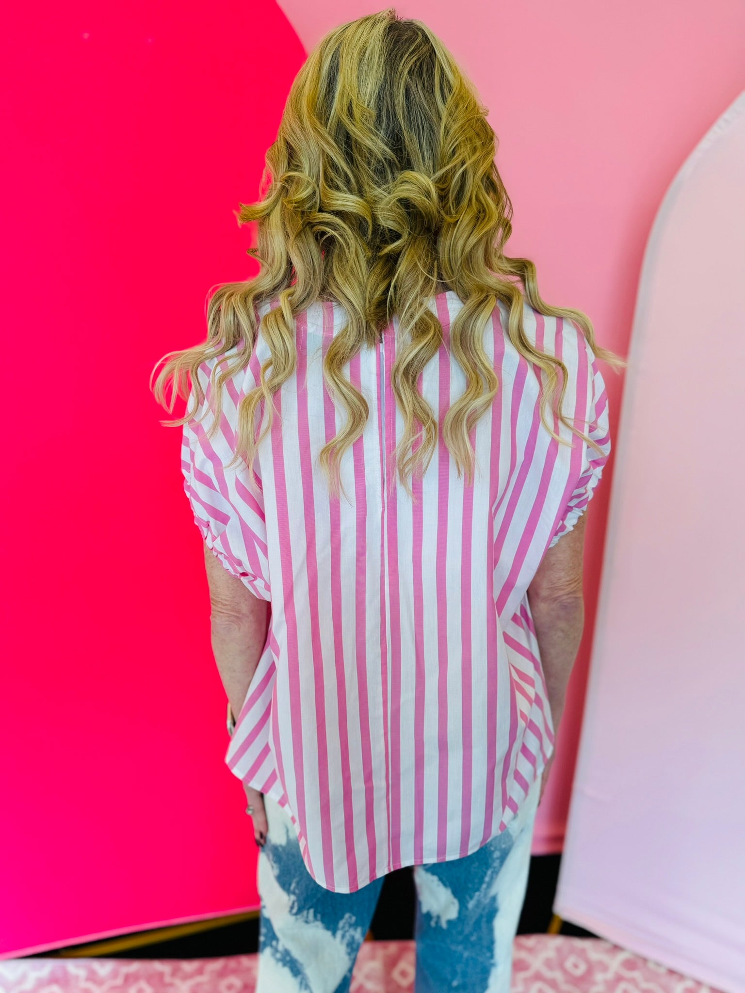 Maeve Pink Ten Stripe Boxy Top