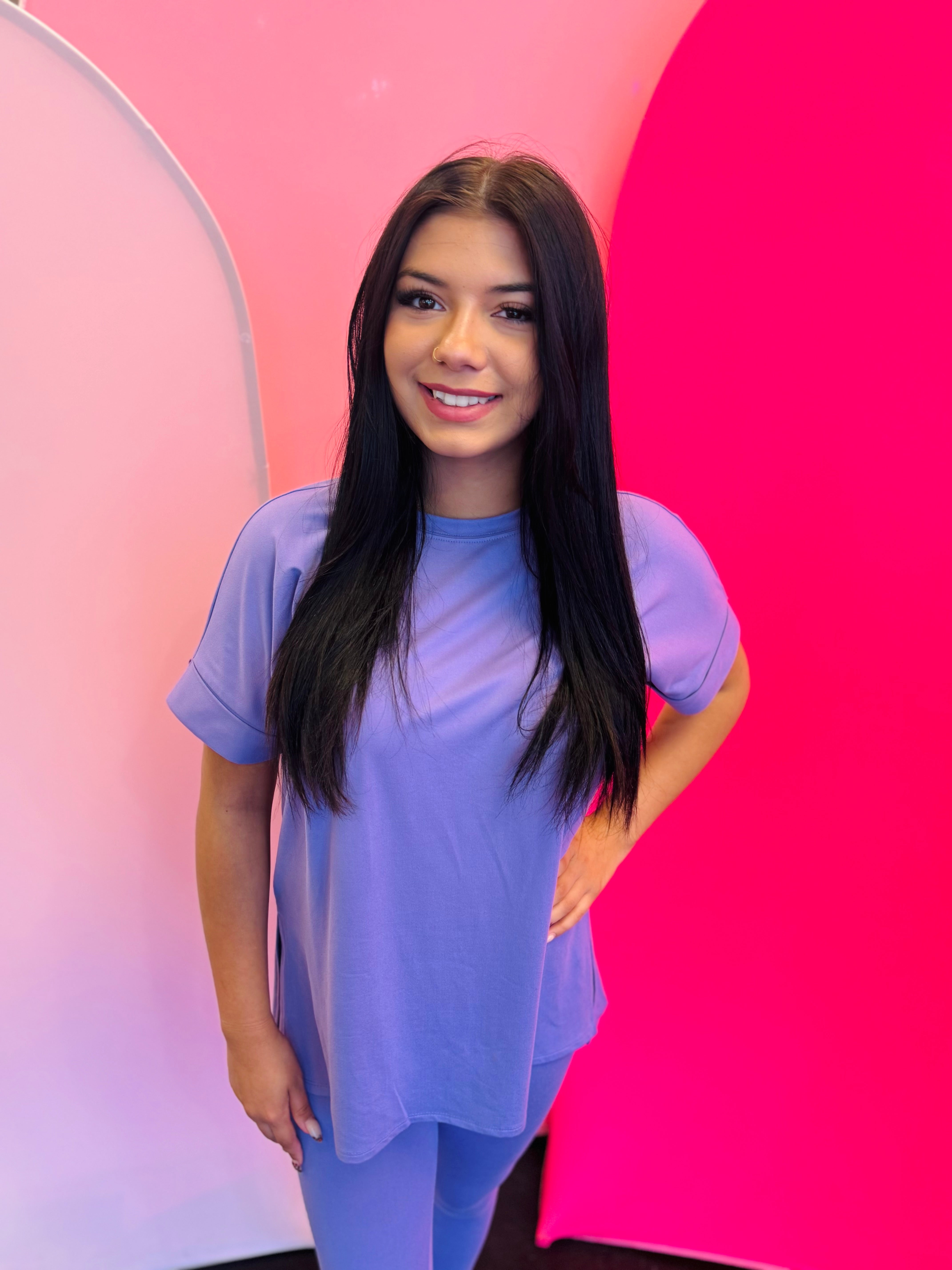 Unwind in the Marlin Loungewear Set. Made with buttery soft brushed microfiber, this set offers perfect stretch and recovery for your ultimate comfort. Enjoy the round neck and hi-low hem top, perfect for relaxing in style. (Say goodbye to stiff and uncomfortable sets!)