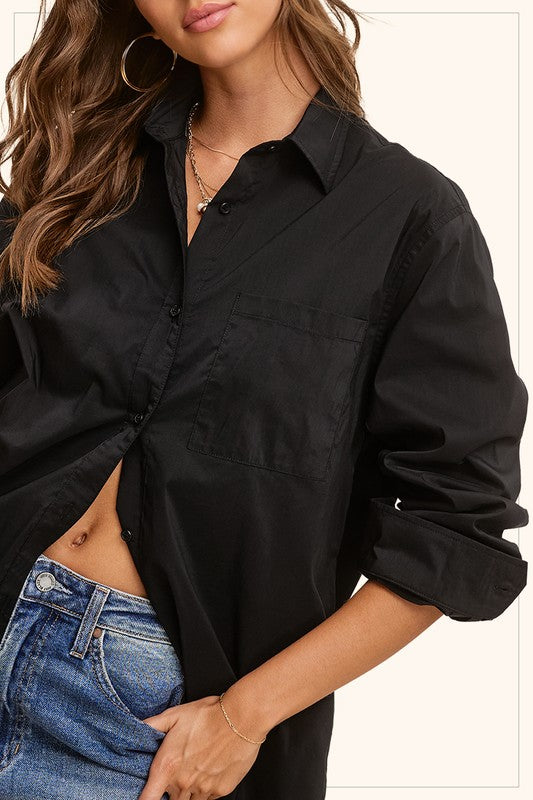 Midnight Black Button Down Shirt