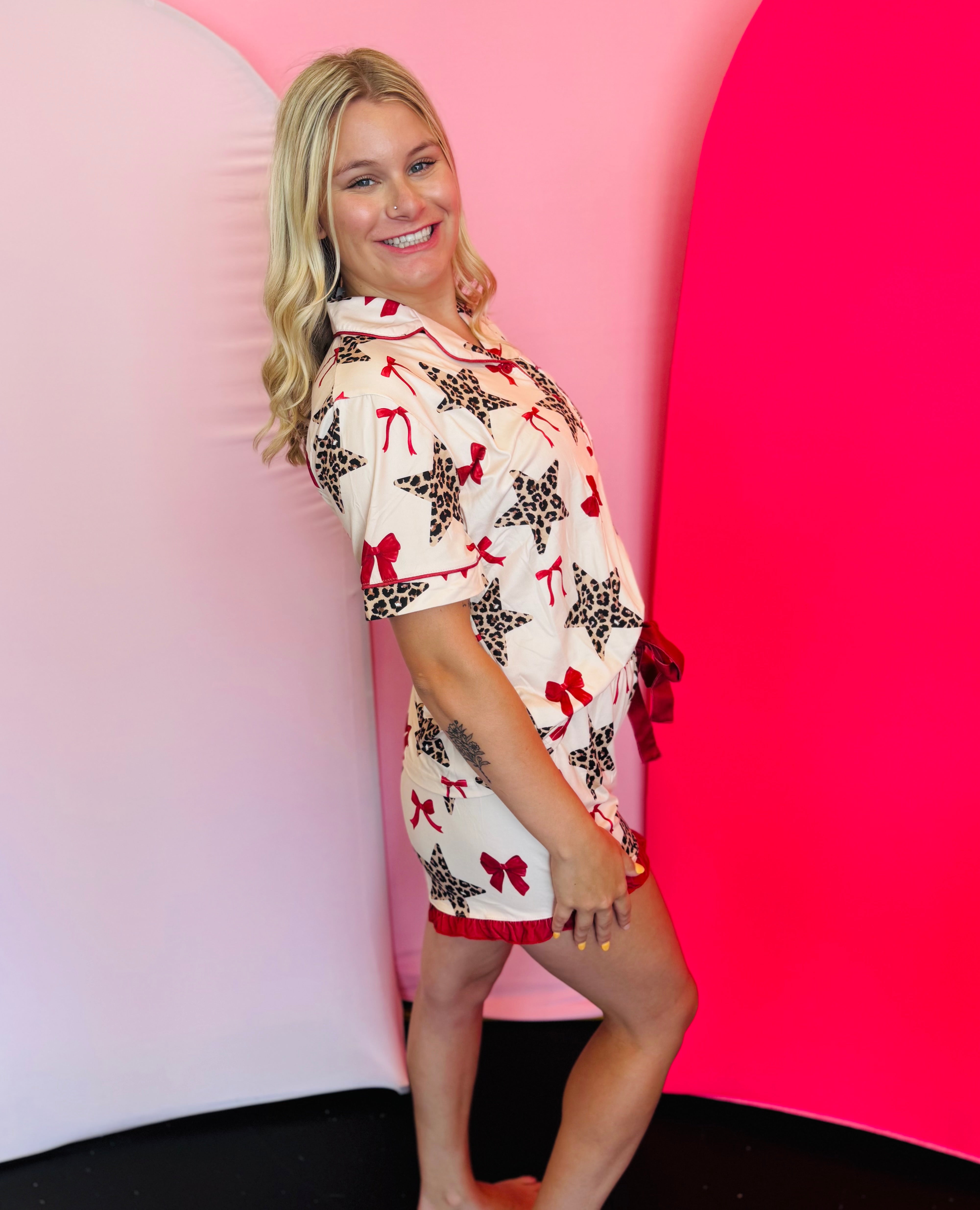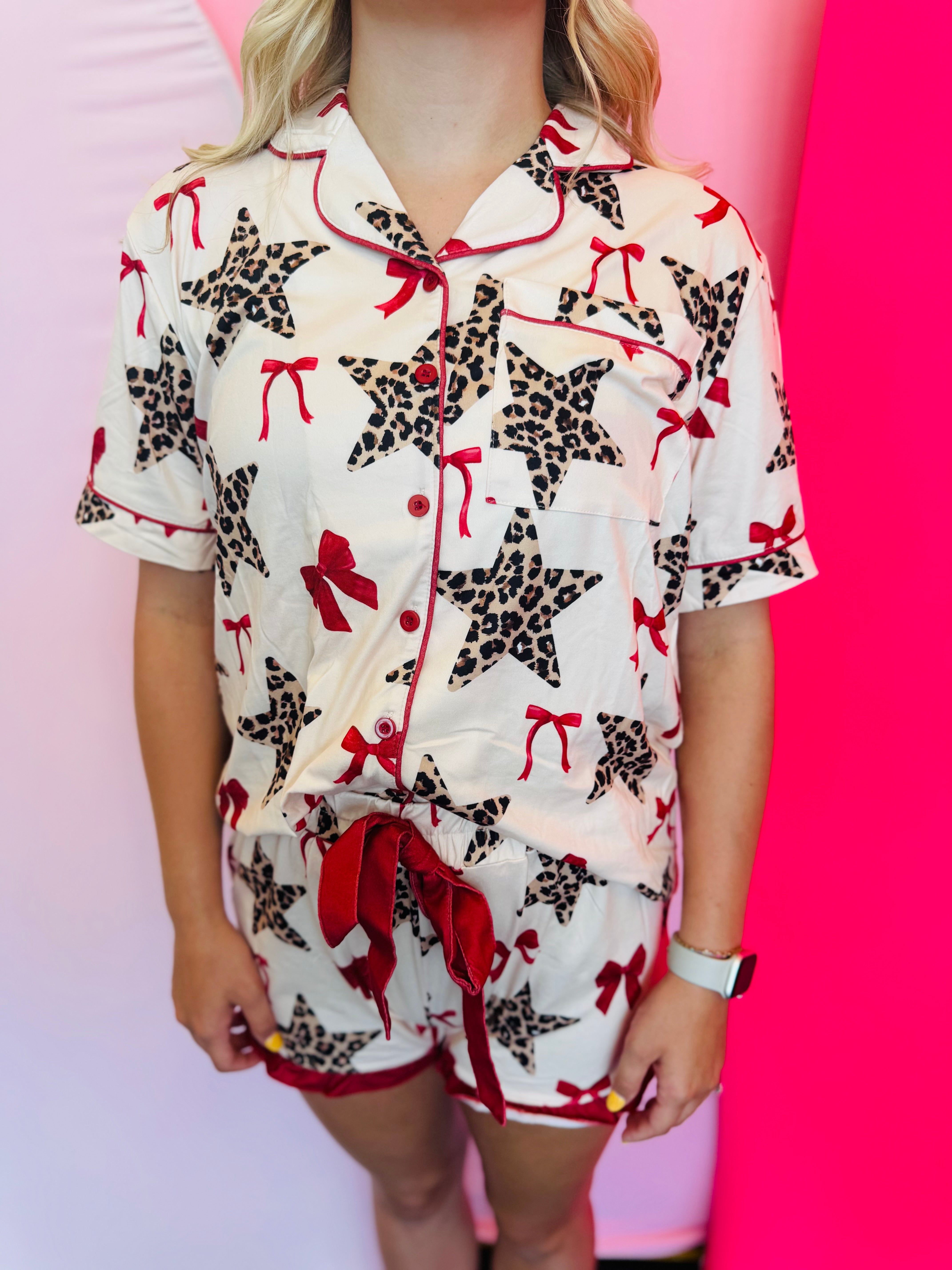 Lounge in ultimate comfort and style with our Simply Untamed Ruffle Pajama Set—your new go-to for chic and cozy sleepwear. This two-piece set features a soft, lightweight fabric blend of 96% polyester and 4% spandex, offering just the right amount of stretch for all-night comfort. The button-up top showcases a relaxed fit and playful print, while the coordinating ruffle shorts add a flirty flair with their feminine hemline and decorative drawstring tie. Whether you’re winding down after a long day or enjoying a lazy weekend morning, this pajama set brings a touch of fun to your sleepwear routine.