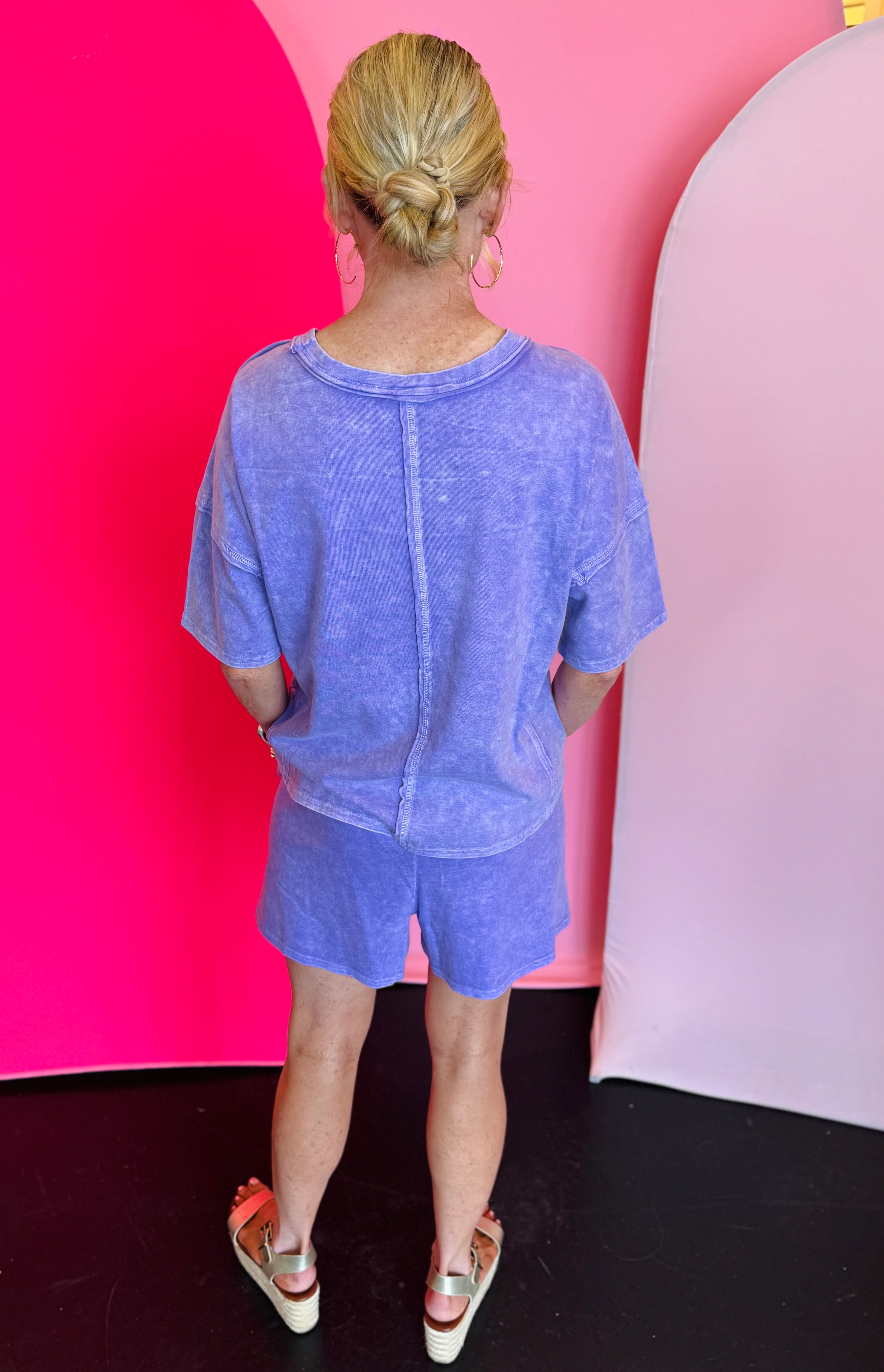 Dive into summer with our Violet Halo Snow Washed Short Set! This playful duo combines a comfy round neck tee with easy-breezy elastic waist shorts. The trendy snow-washed finish gives you that perfectly broken-in vibe without the wait. Whether you're running errands or lounging with friends, this set keeps you looking effortlessly cool while feeling oh-so-comfy!