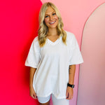 Rock your style with the White Biker Short Set! Made from comfortable cotton, this set features a V-neck raglan sleeve top with raw edges and biker shorts. Perfect for a casual day out or a workout session. Get ready to slay in this trendy set!