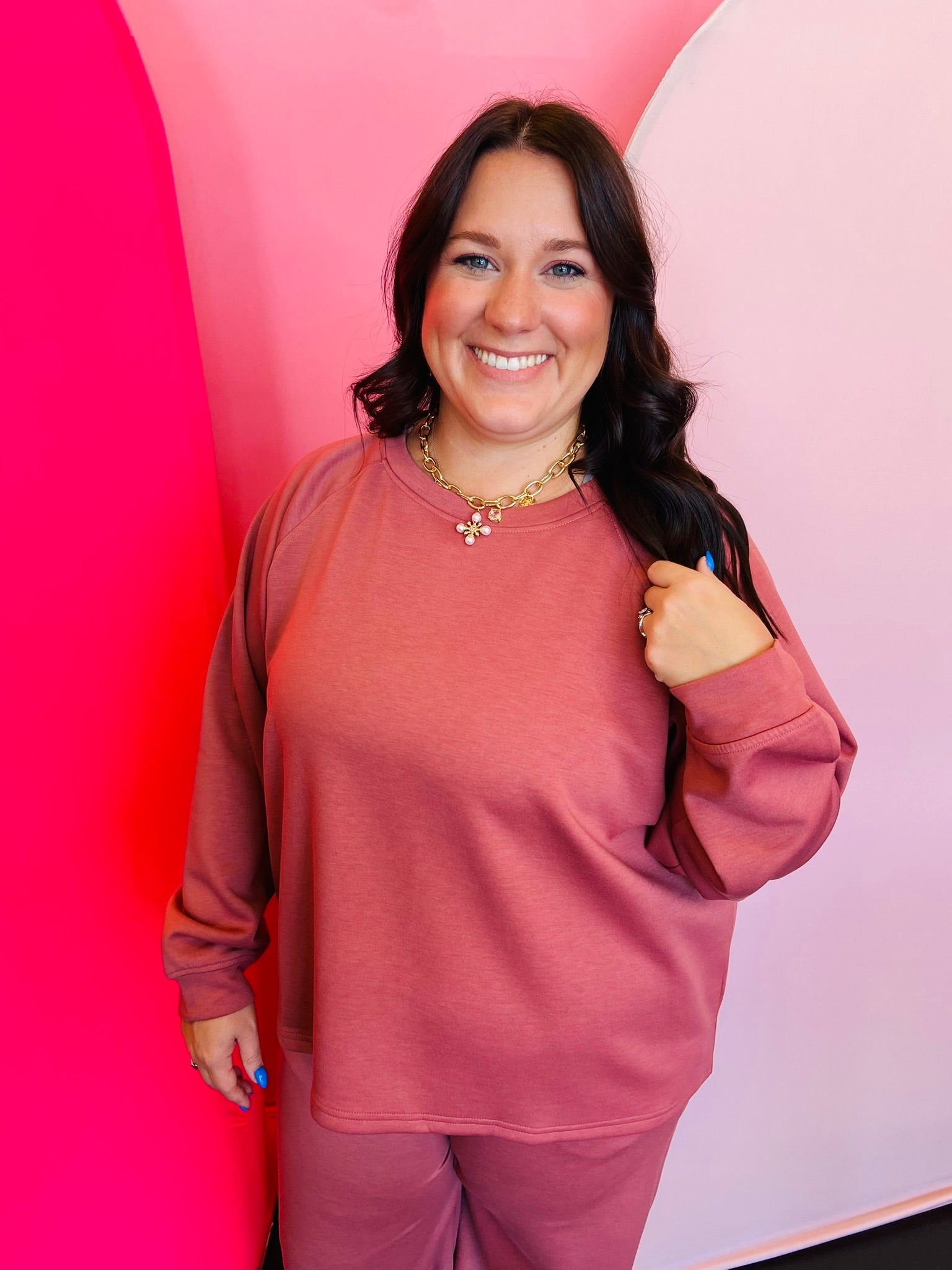 Stay effortlessly stylish and comfortable with the Winter Rose Scuba Crewneck Pullover & Pants Set, designed with plus sizes in mind. Crafted from a soft and durable blend of 90% polyester, 6% rayon, and 4% spandex, this set delivers the perfect mix of stretch, structure, and everyday ease. The crewneck pullover features a relaxed fit with an approximate 27" body length and 50" bust, offering breathable comfort and a modern silhouette. Paired with matching pants that include a 35" relaxed waist and 30" inseam, this set ensures a flattering fit with plenty of flexibility. Perfect for lounging, traveling, or casual outings, the Winter Rose Scuba Set transitions seamlessly from cozy at home to chic on the go. A must-have for trend-right, all-day wear.