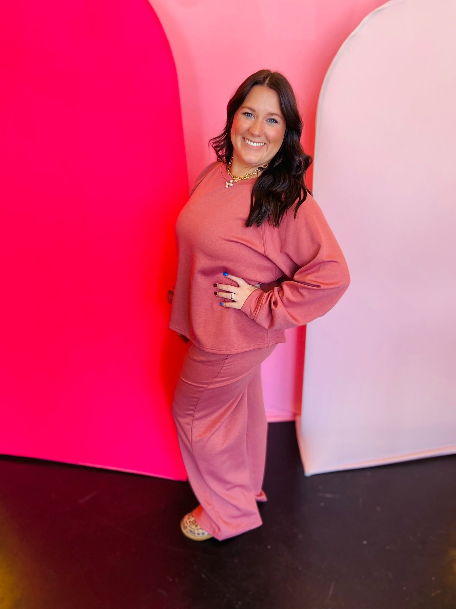 Winter Rose Scuba Crewneck Pullover Pants Set