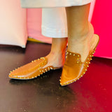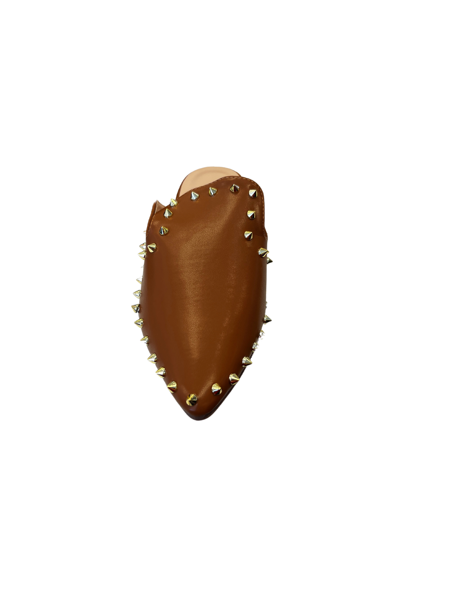 Step into effortless sophistication with the Clair Camel Slides, where timeless style meets modern edge. Designed in a rich camel hue, these slides bring a warm, versatile touch to your wardrobe, making them the perfect statement shoe for every season. The sleek silhouette is elevated with bold spikey stud accents, adding a touch of luxury and personality to a classic design. Crafted for comfort as well as style, the slip-on construction makes them easy to wear, while the premium materials ensure lasting quality. Whether you’re pairing them with tailored trousers for a chic day at the office, a breezy dress for brunch, or denim for a polished casual look, these slides add instant sophistication to any outfit.