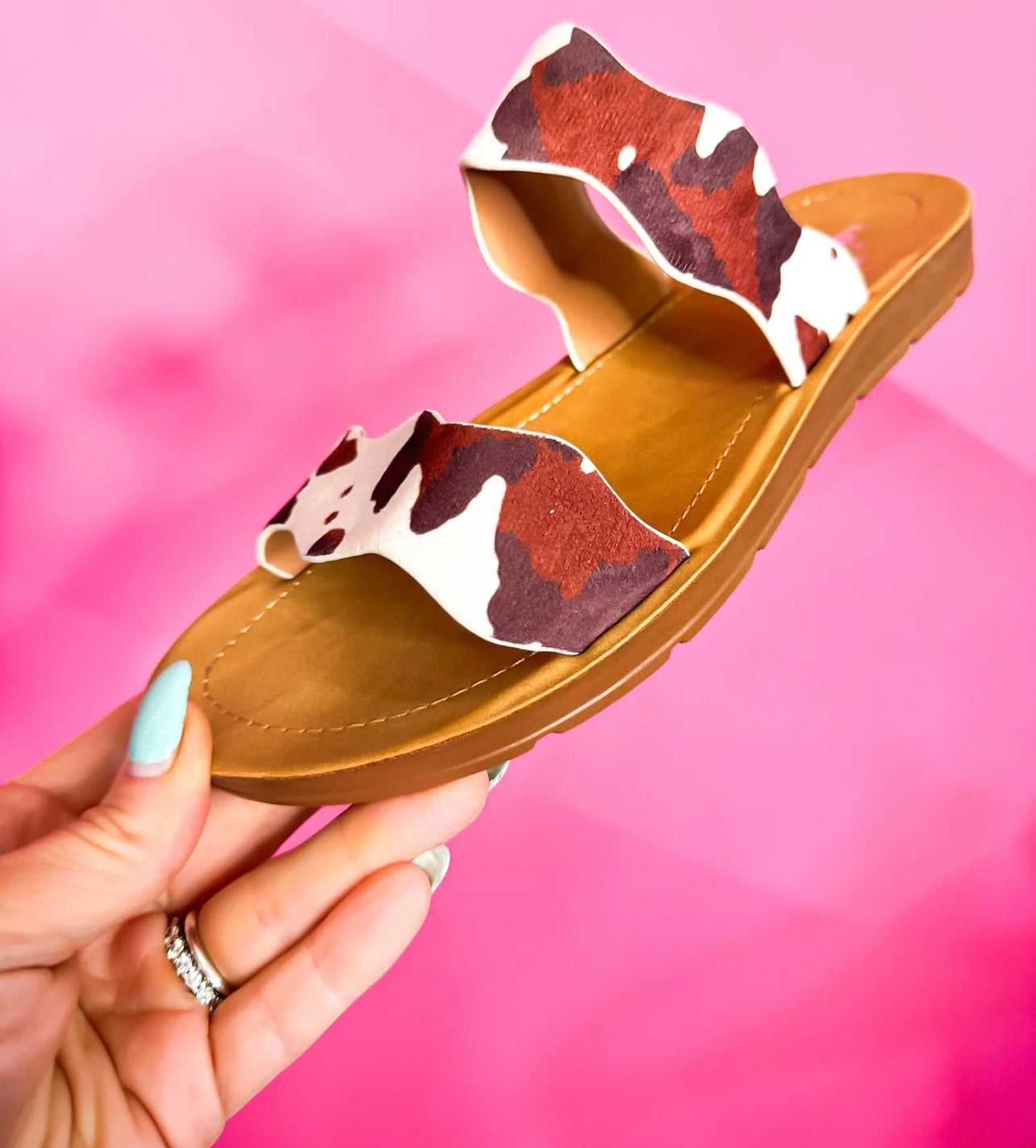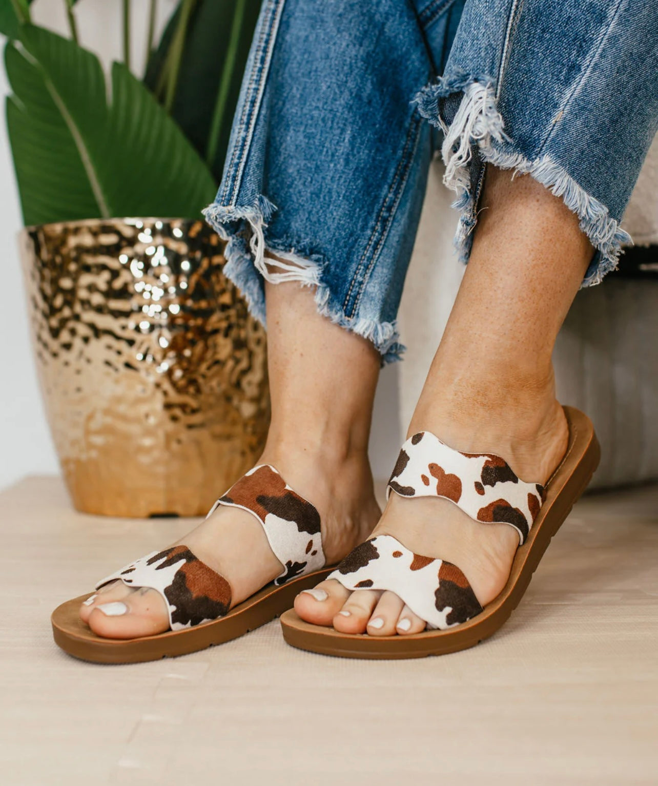 Step into summer style with the Corkys Wishy Washy Brown Cow Sandals! Featuring a playful cow print and chic, intricately designed straps, these sandals blend trendy flair with lasting comfort. The soft, cushioned footbed offers all-day support—perfect for long walks or relaxed outings. Crafted with quality materials, these sandals promise durability without sacrificing fashion. Whether you're brunching with friends or heading out for errands, the Wishy Washy sandal adds just the right touch of fun to any outfit. Their versatile brown cow pattern pairs effortlessly with denim, dresses, or casual wear for a look that’s both bold and easygoing.